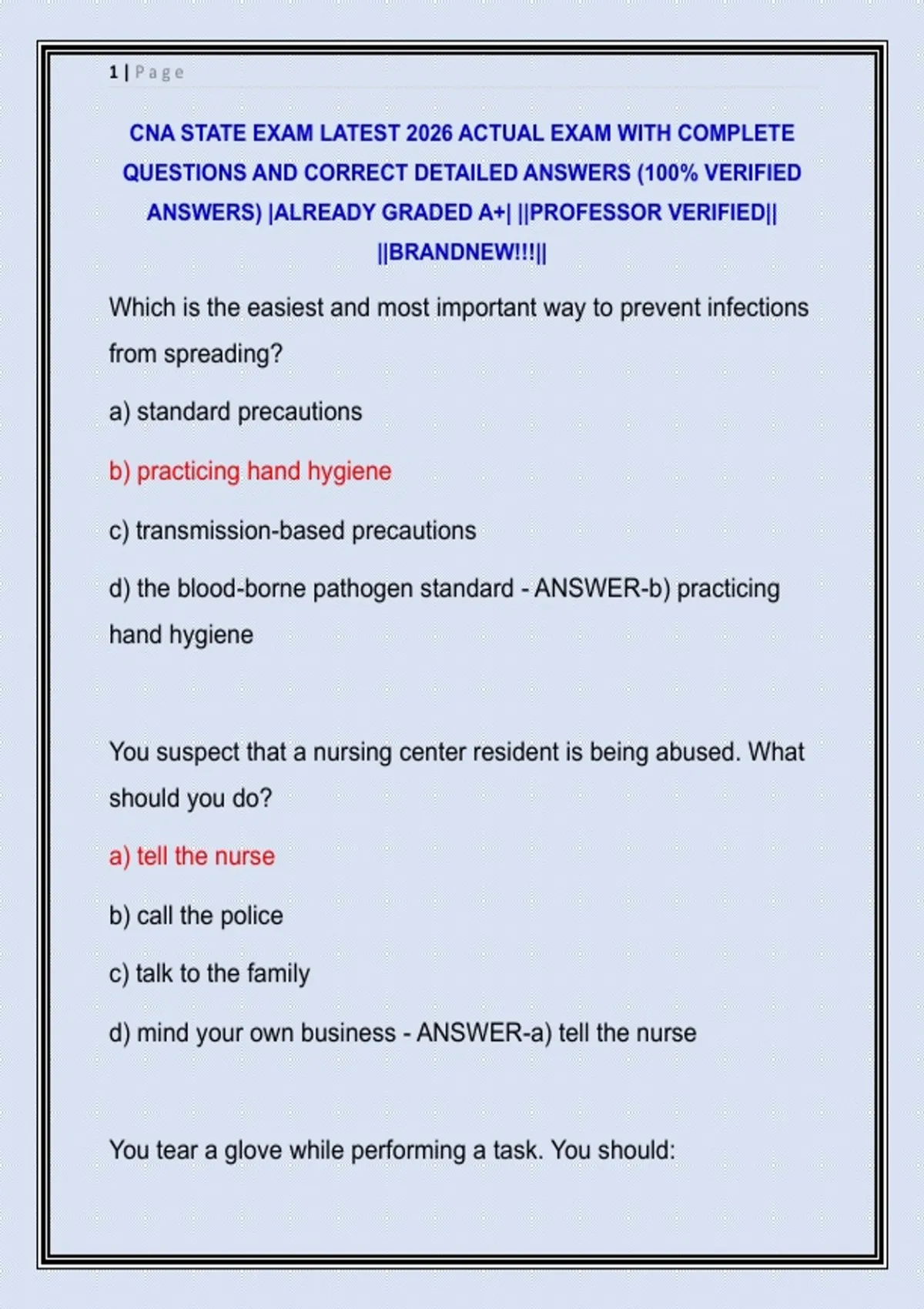 CNA STATE EXAM LATEST 2026 ACTUAL EXAM WITH COMPLETE