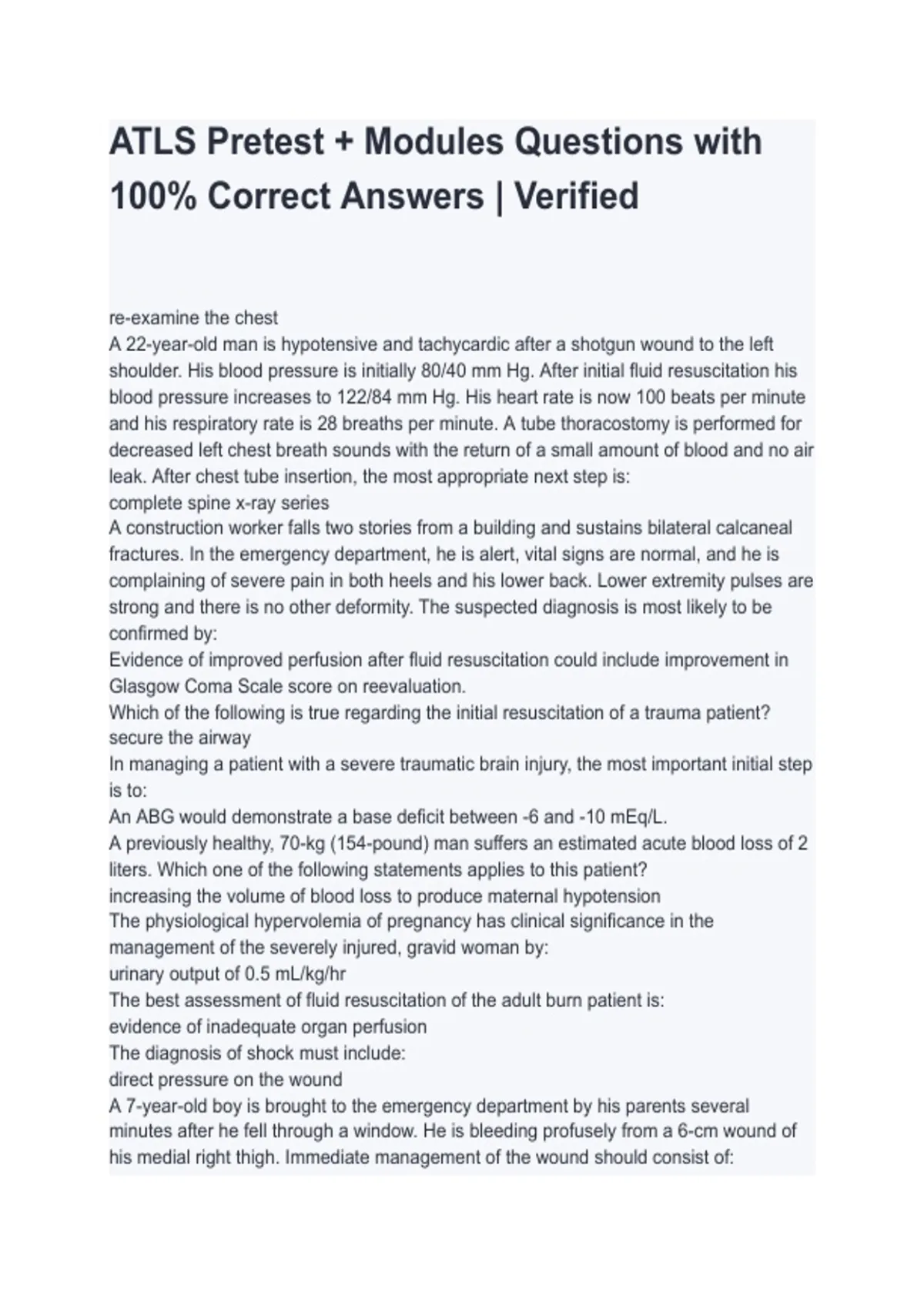 ATLS Pretest + Modules Questions with