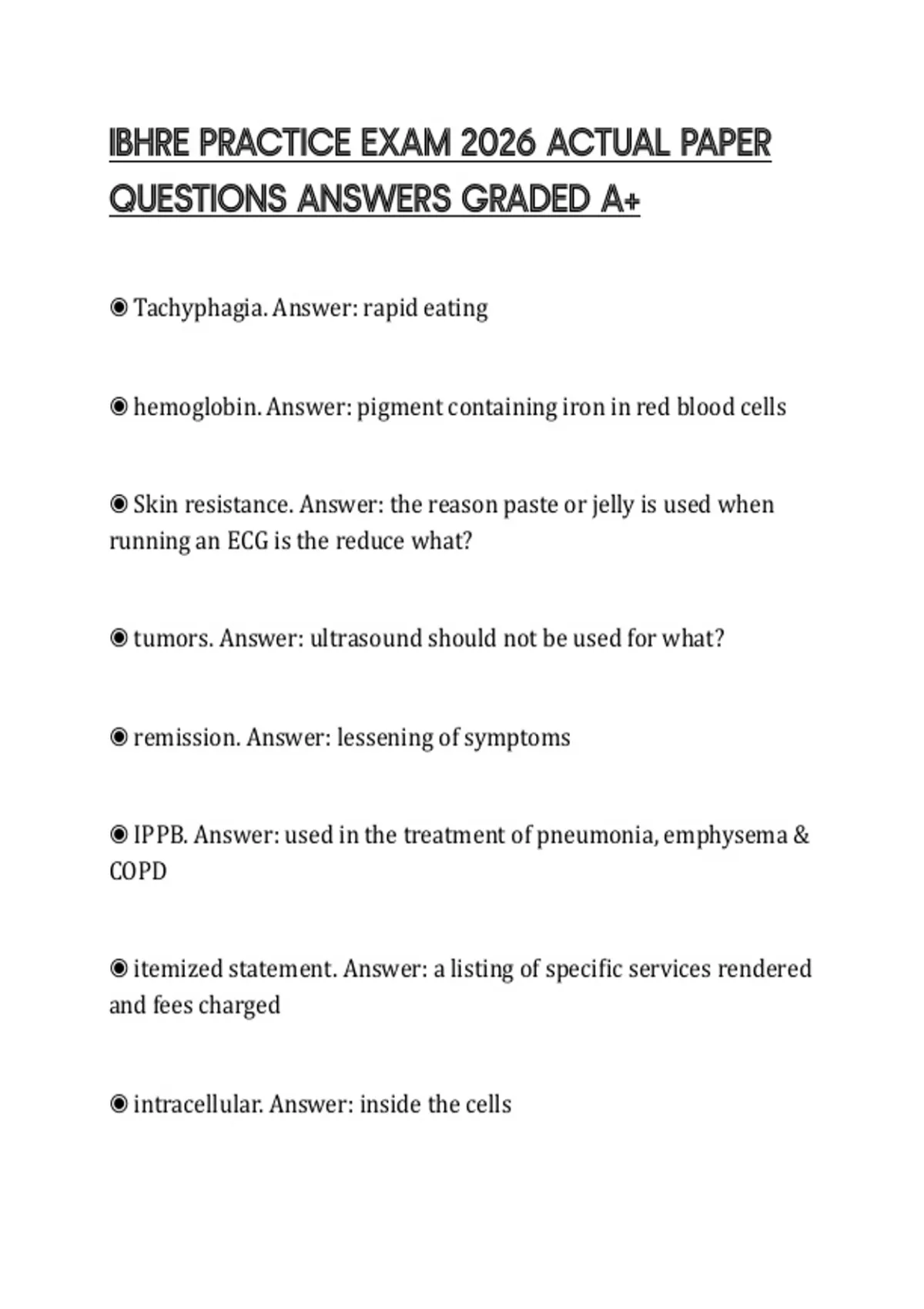 IBHRE PRACTICE EXAM 2026 ACTUAL PAPER QUESTIONS ANSWERS GRADED A+