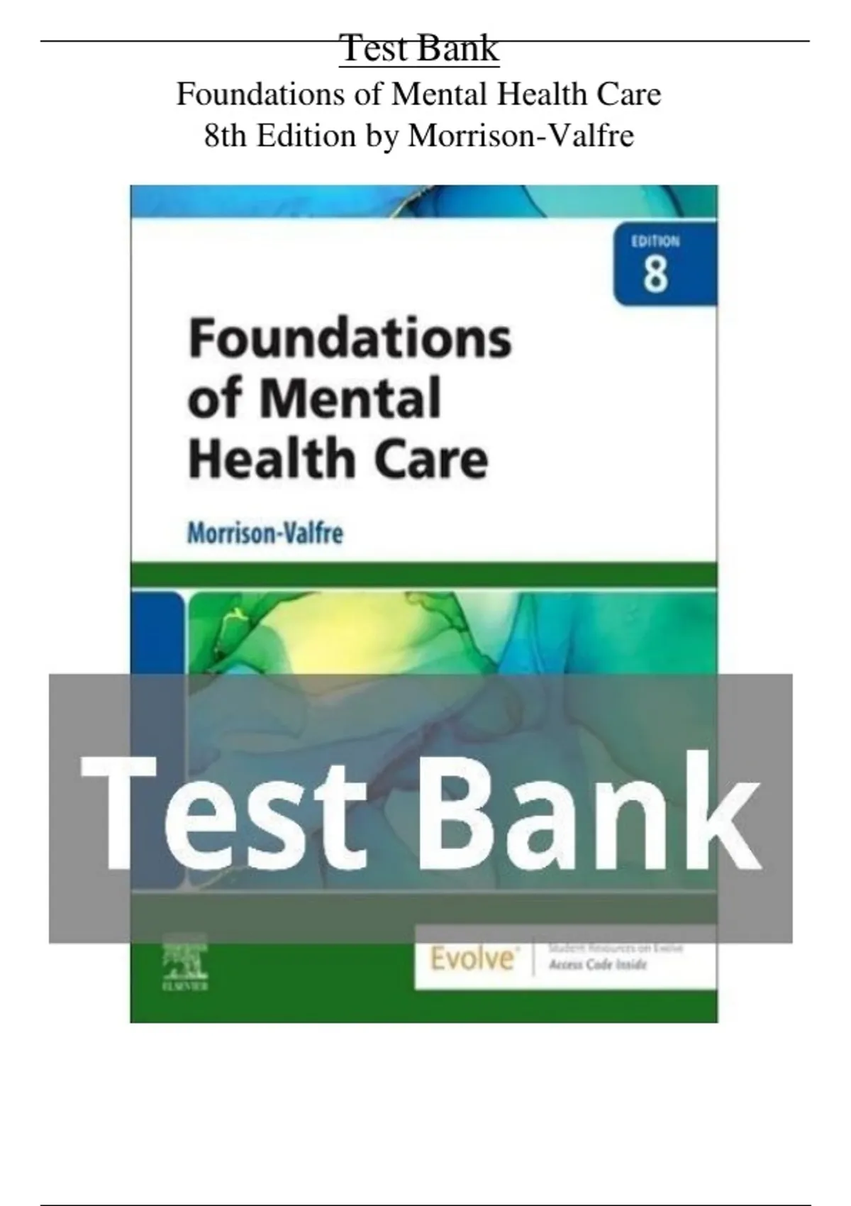 Test Bank For Foundations of Mental Health Care 8th Edition by Michelle Morrison‑Valfre ISBN 9780323810296 Chapters(1 to 33)