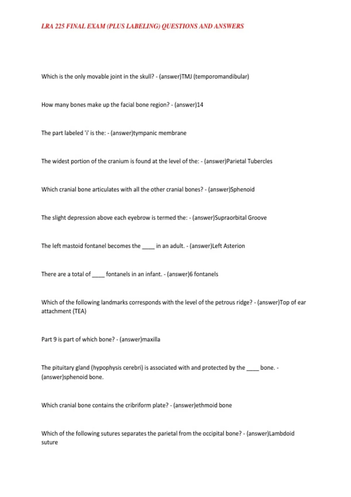 LRA 225 FINAL EXAM (PLUS LABELING) QUESTIONS AND ANSWERS
