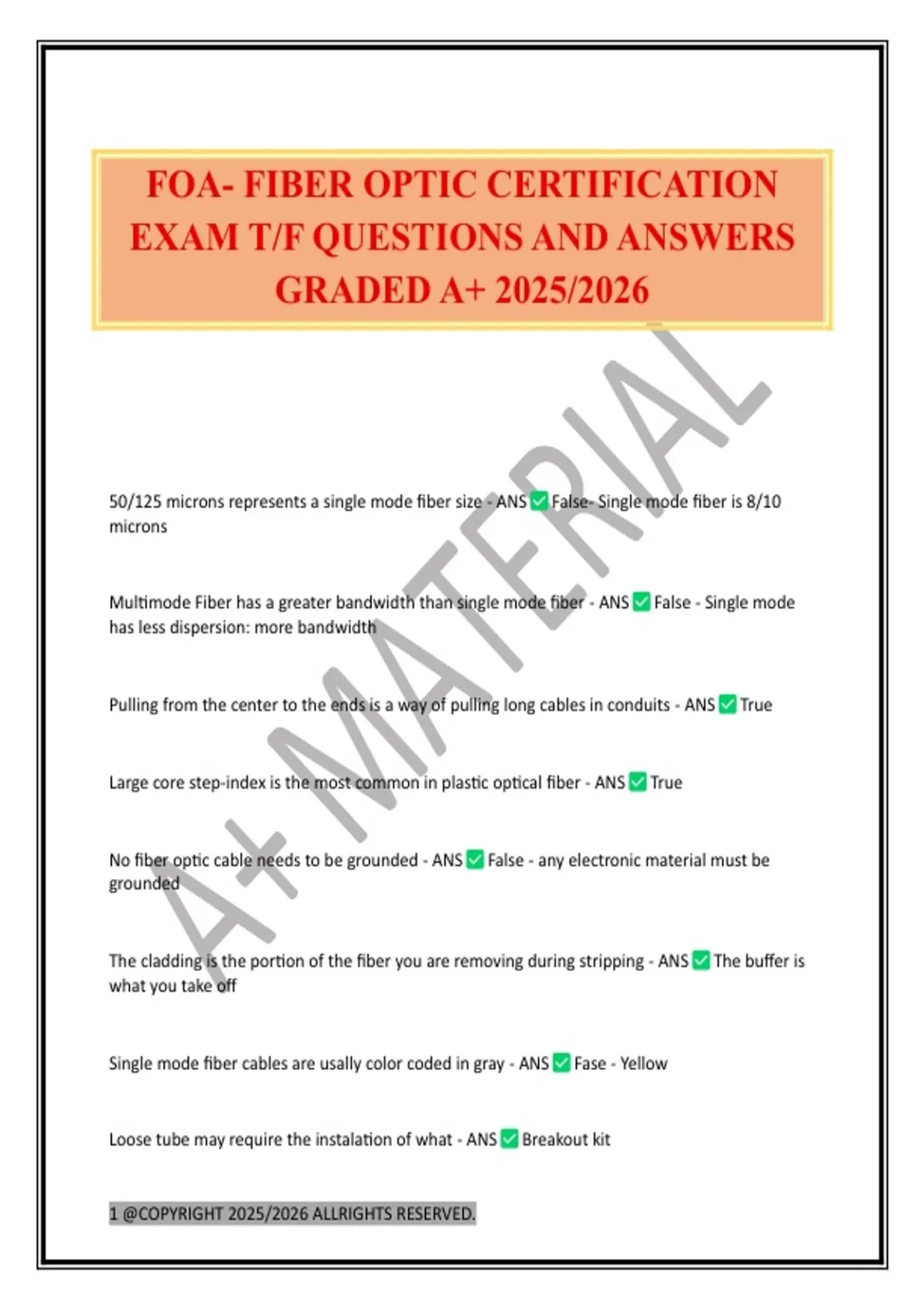 50/125 microns represents a single mode fiber size - ANS False- Single mode fiber is 8/10