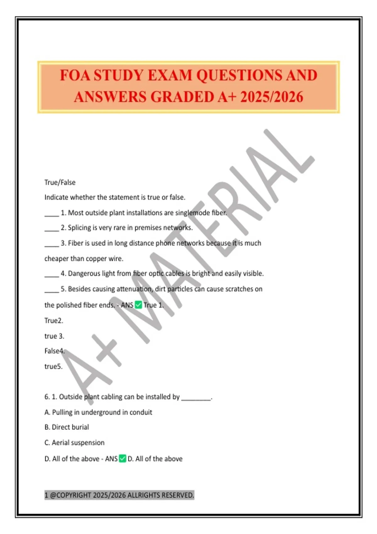 FOA STUDY EXAM QUESTIONS AND