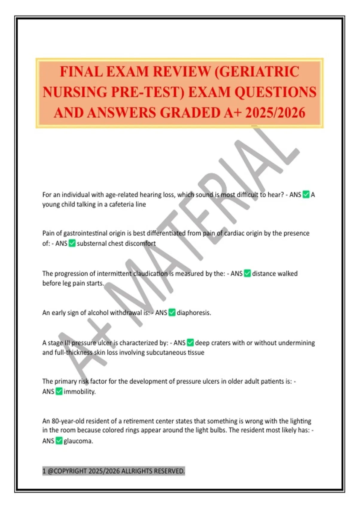 FINAL EXAM REVIEW (GERIATRIC