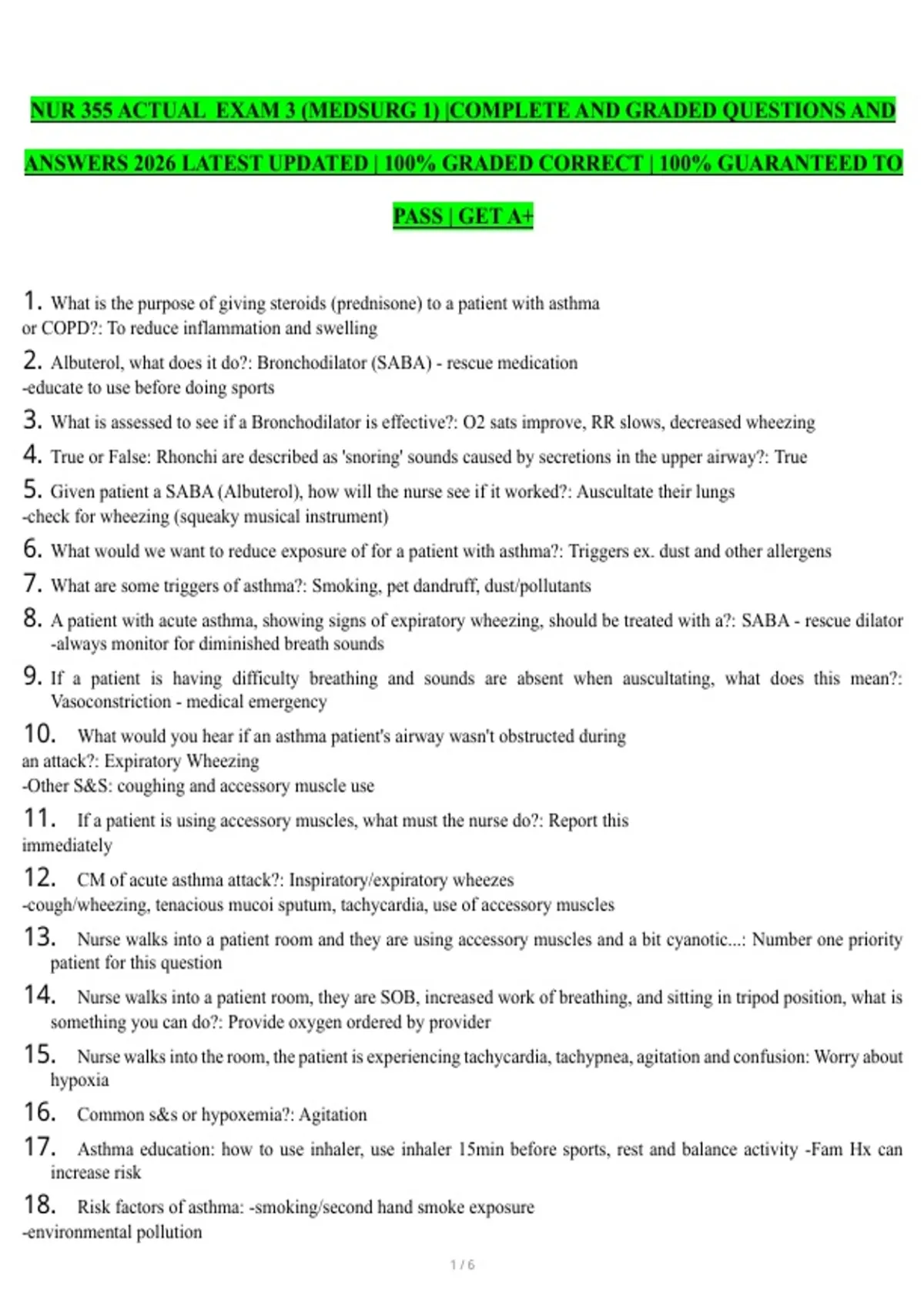 5. Given patient a SABA (Albuterol), how will the nurse see if it worked?: Auscultate their lungs