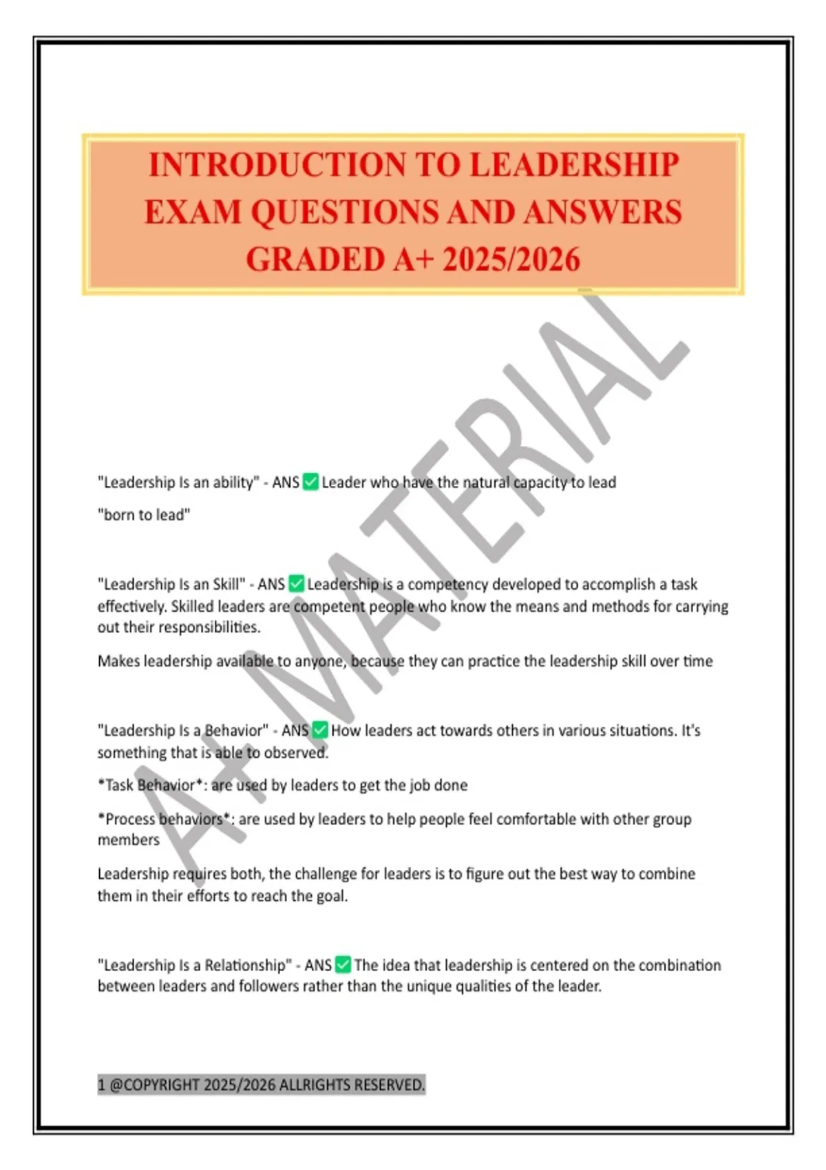 , Leadership - ANS Is a process whereby an individual influences a group of individuals to