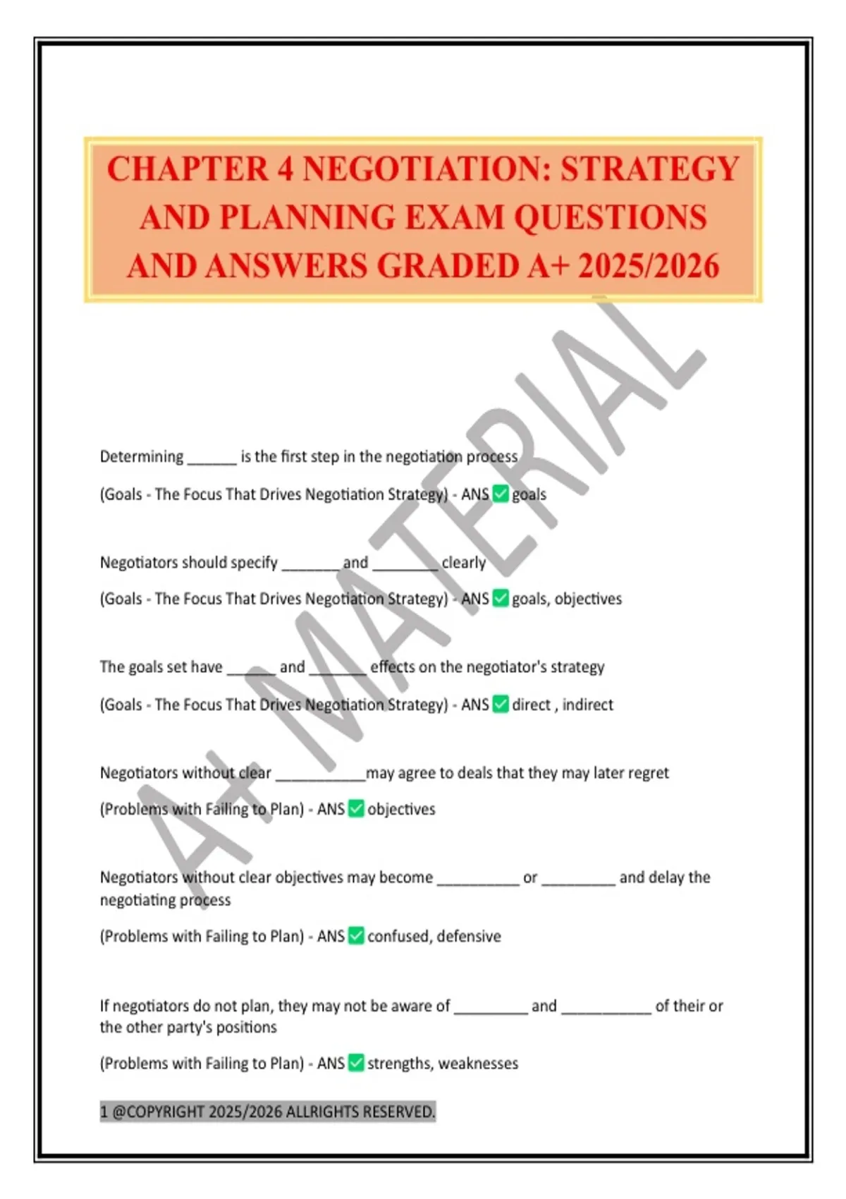 (Goals - The Focus That Drives Negotiation Strategy) - ANS goals, objectives