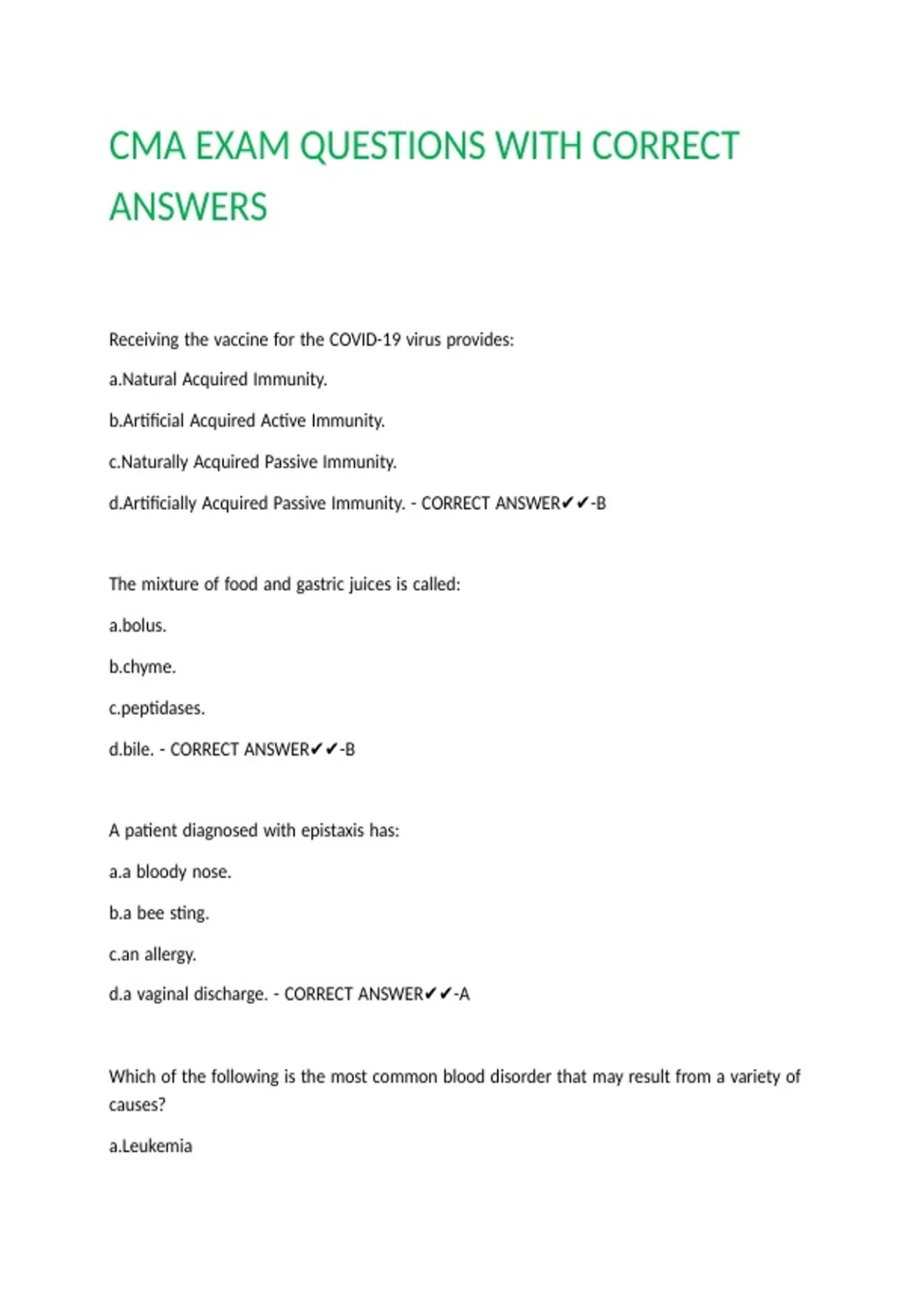 d.Artificially |Acquired |Passive |Immunity. |- |CORRECT |ANSWER✔✔-B