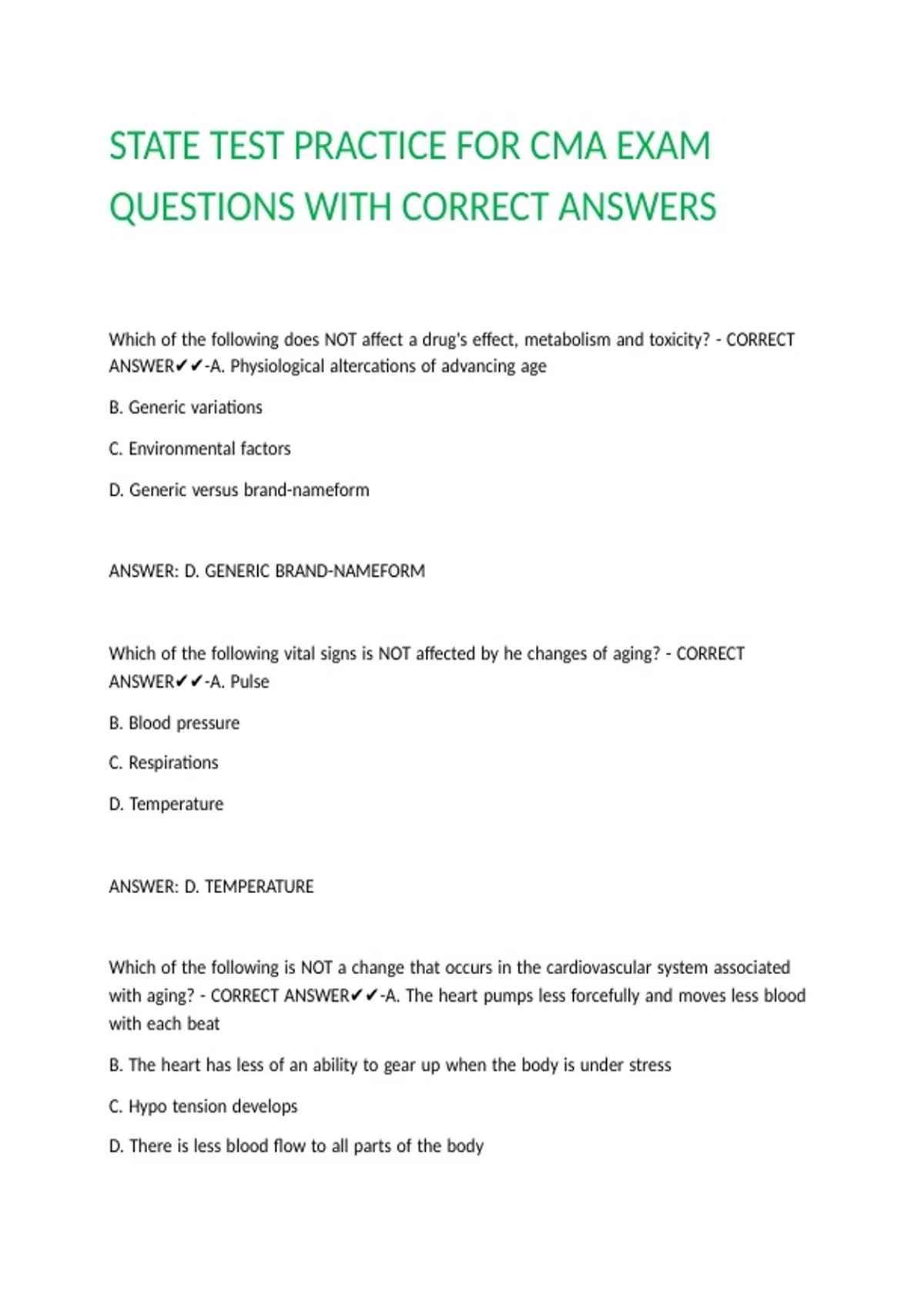 STATE TEST PRACTICE FOR CMA EXAM