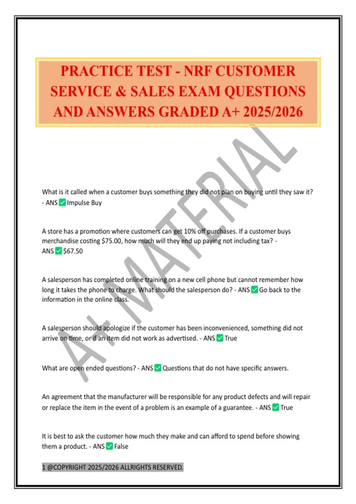 PRACTICE TEST - NRF CUSTOMER