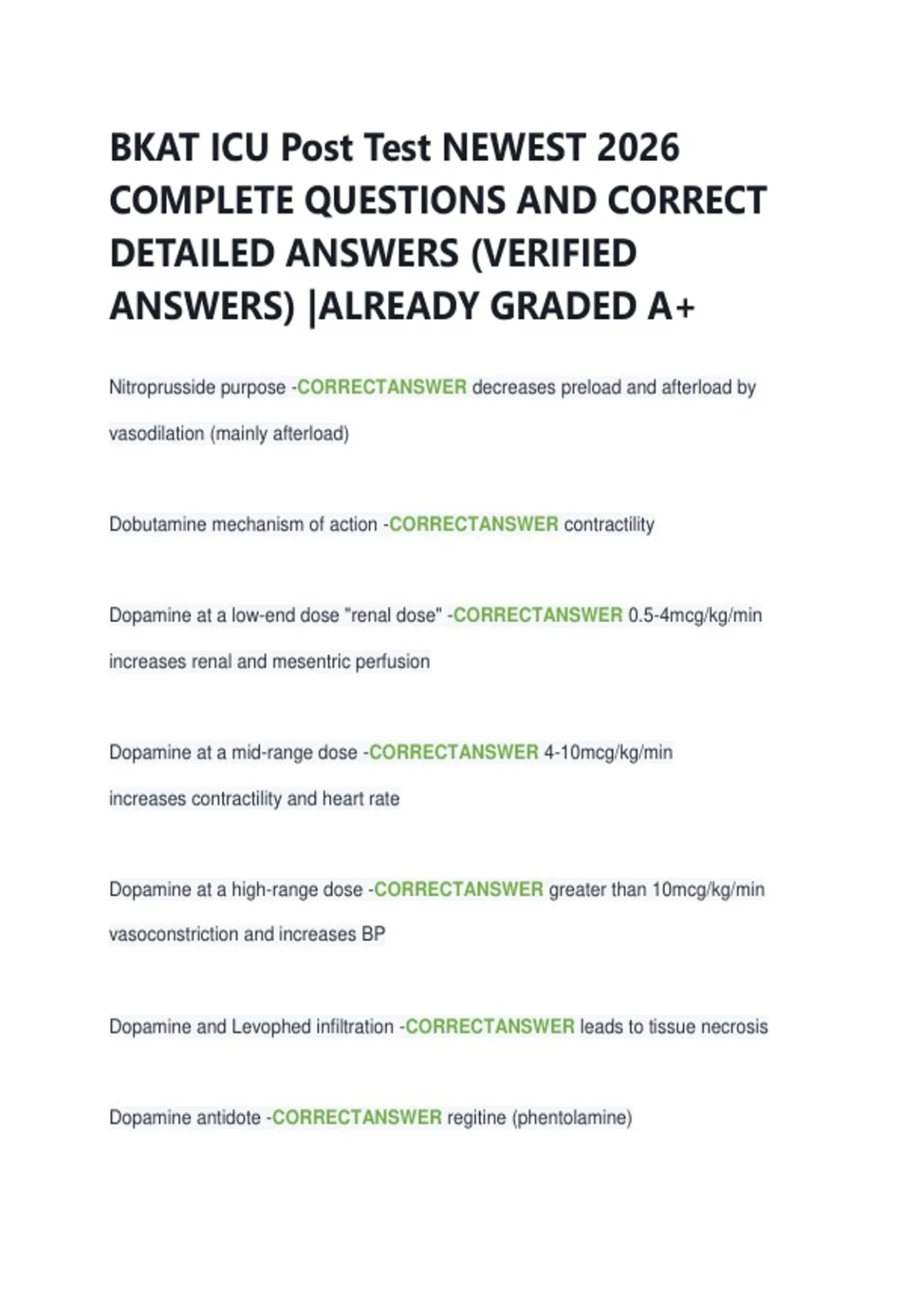 BKAT ICU Post Test NEWEST 2026