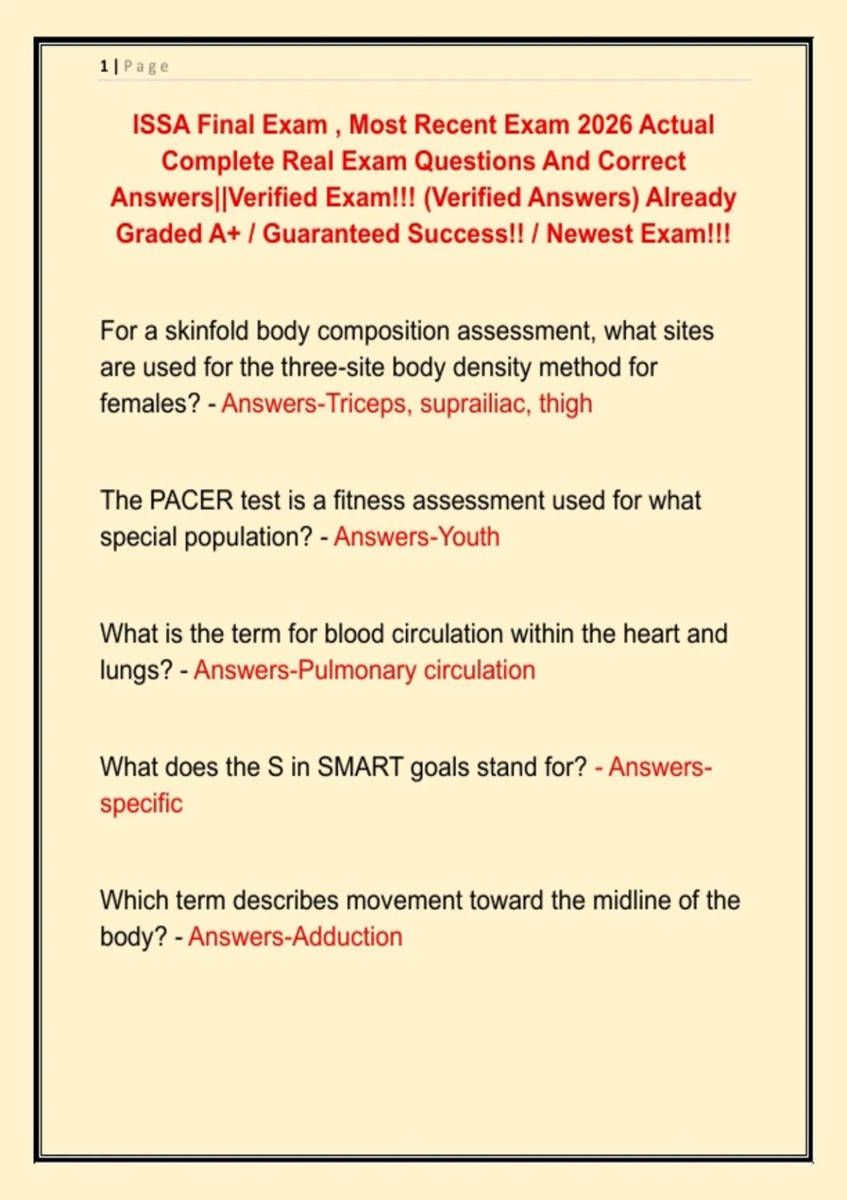 ISSA Final Exam , Most Recent Exam 2026 Actual Complete Real Exam Questions And Correct Answers||Verified Exam!!! (Verified Answers) Already Graded A+ / Guaranteed Success!! / Newest Exam!!!
