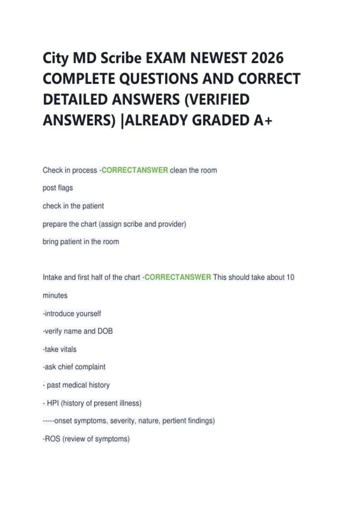 City MD Scribe EXAM NEWEST 2026