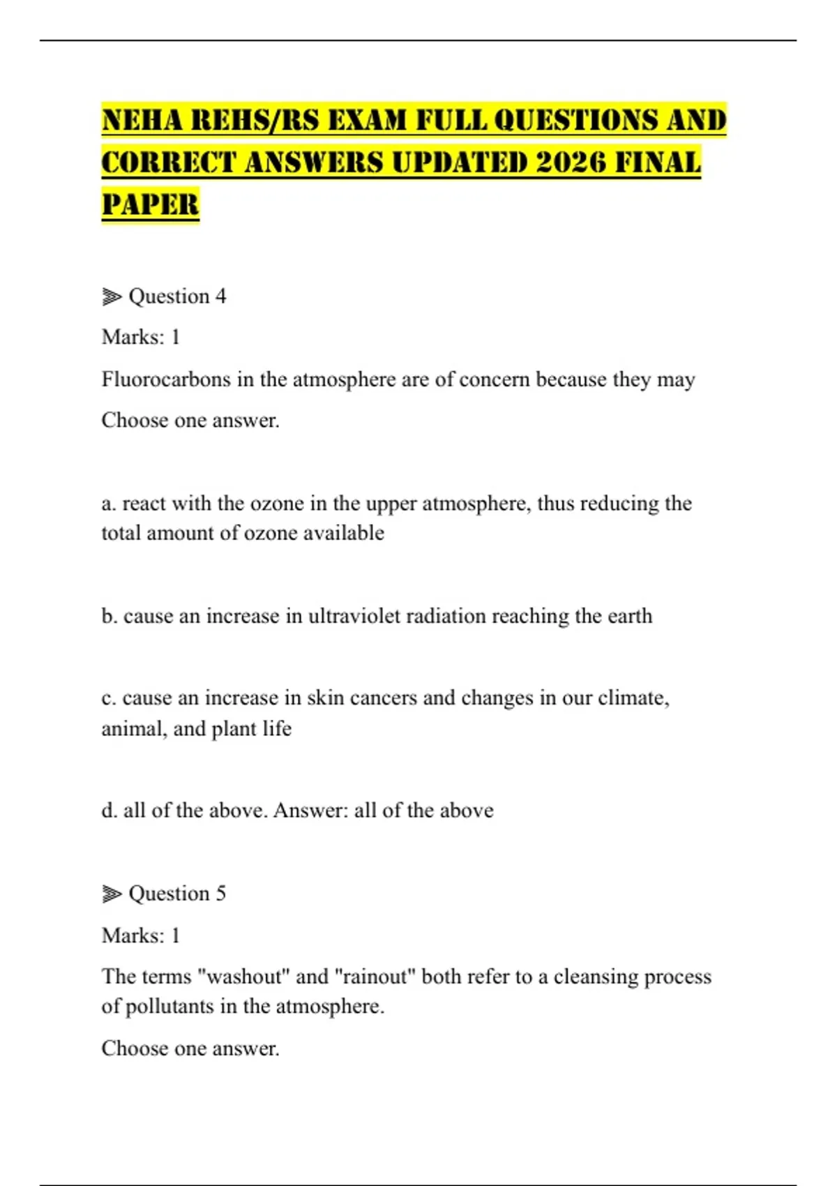 CORRECT ANSWERS UPDATED 2026 FINAL