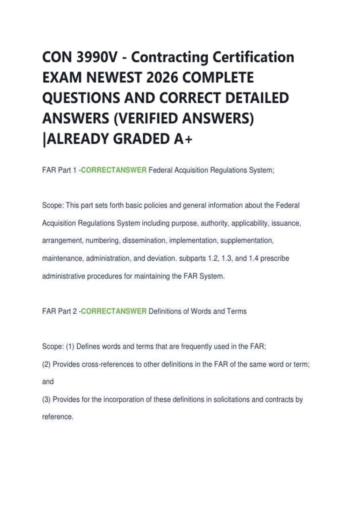 FAR Part 2 -CORRECTANSWER Definitions of Words and Terms
