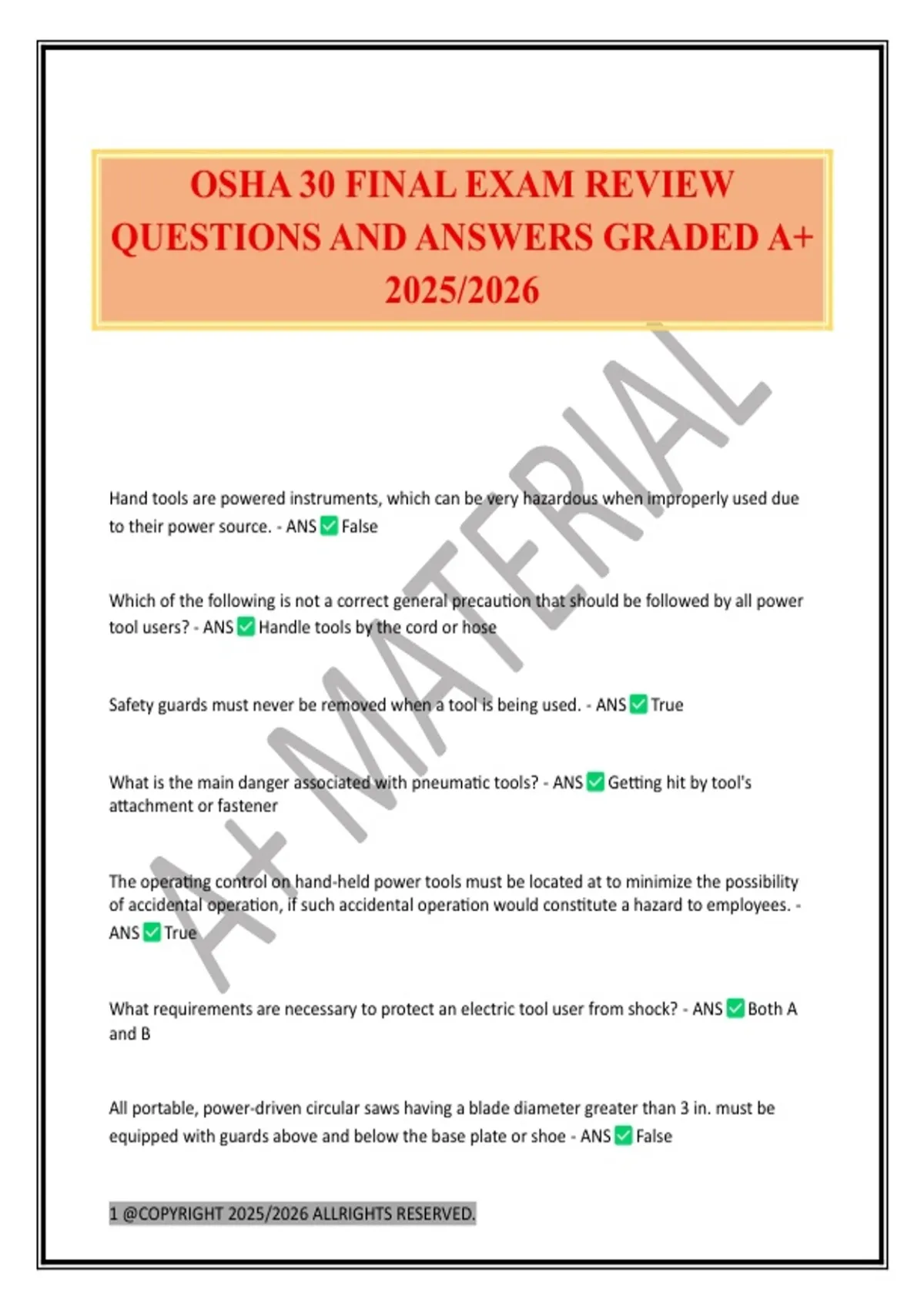 OSHA 30 FINAL EXAM REVIEW
