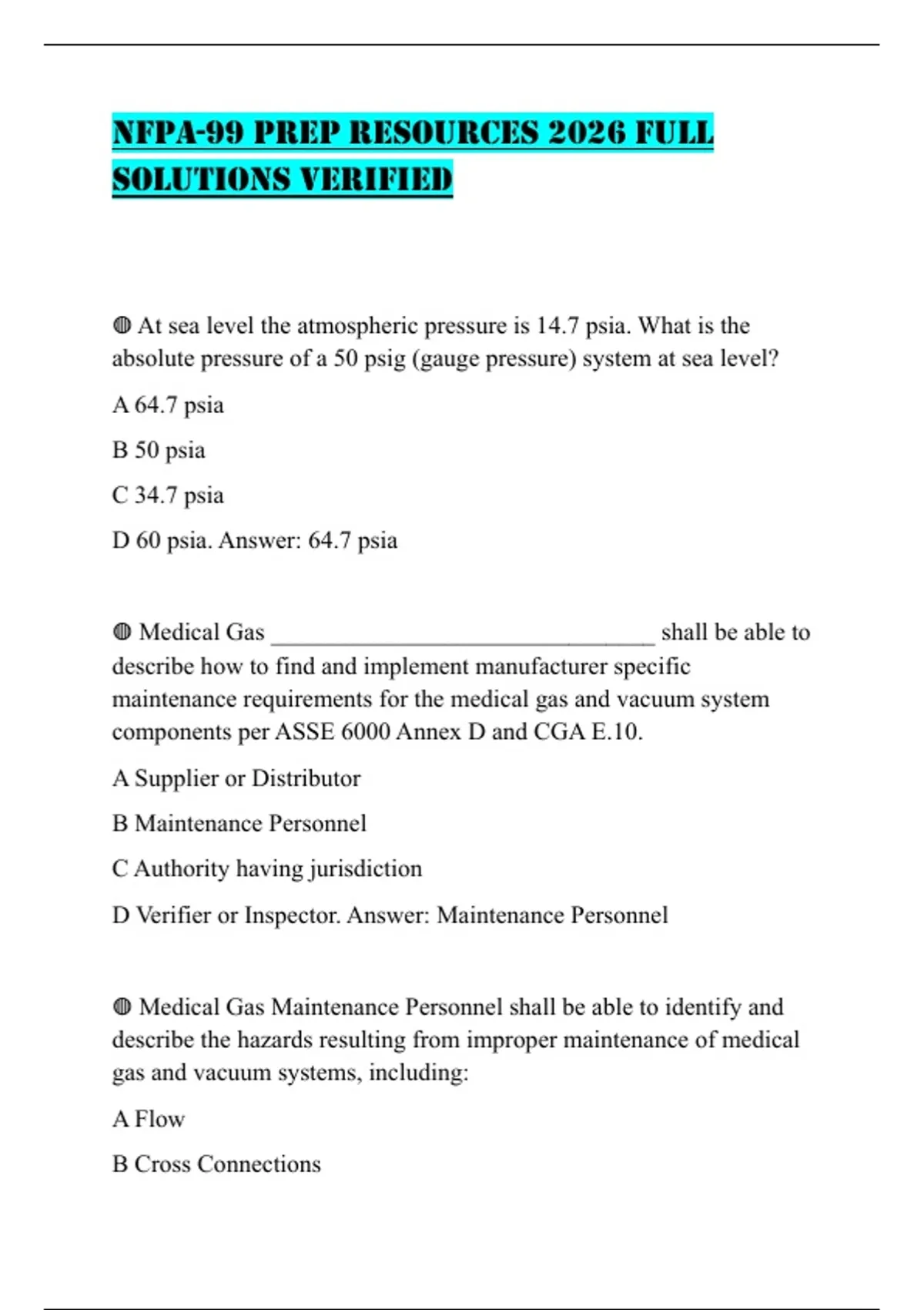 D Gauge Pressure Read Outs. Answer: Emergency Instructions
