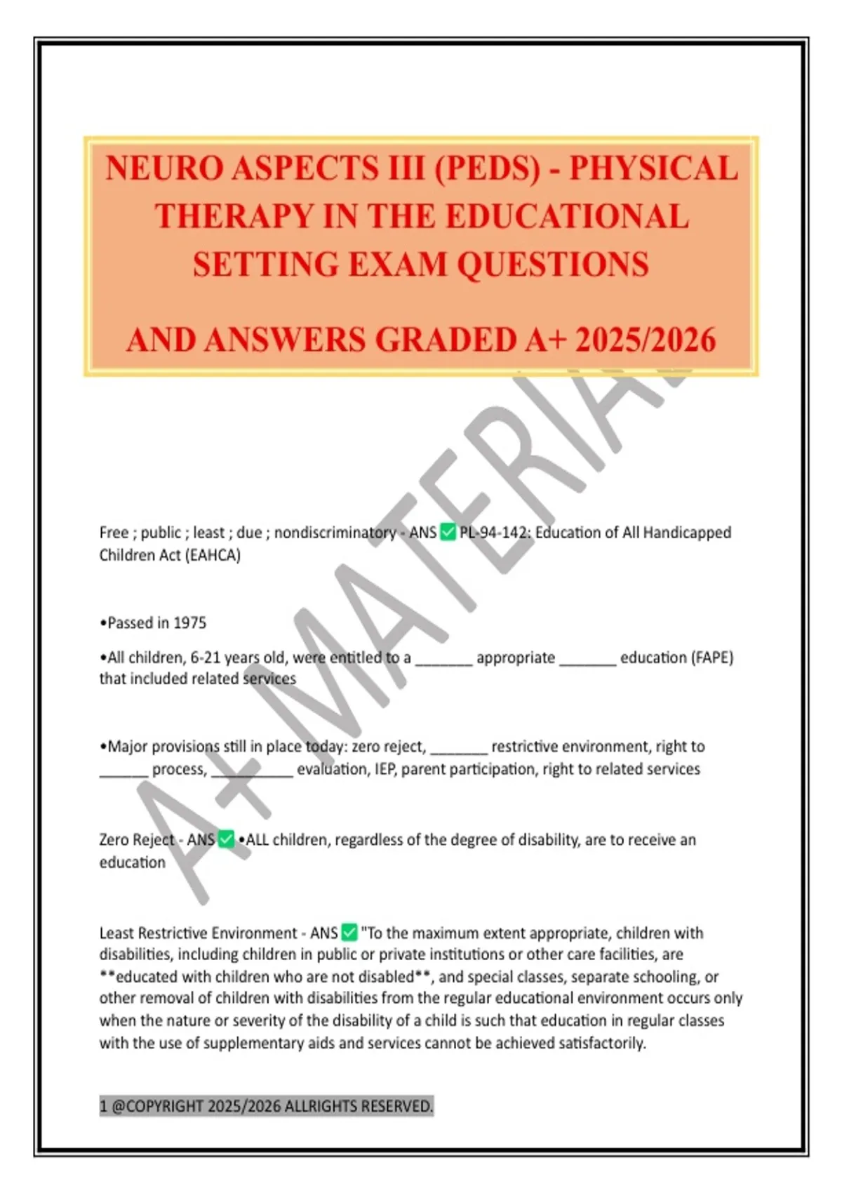 NEURO ASPECTS III (PEDS) - PHYSICAL