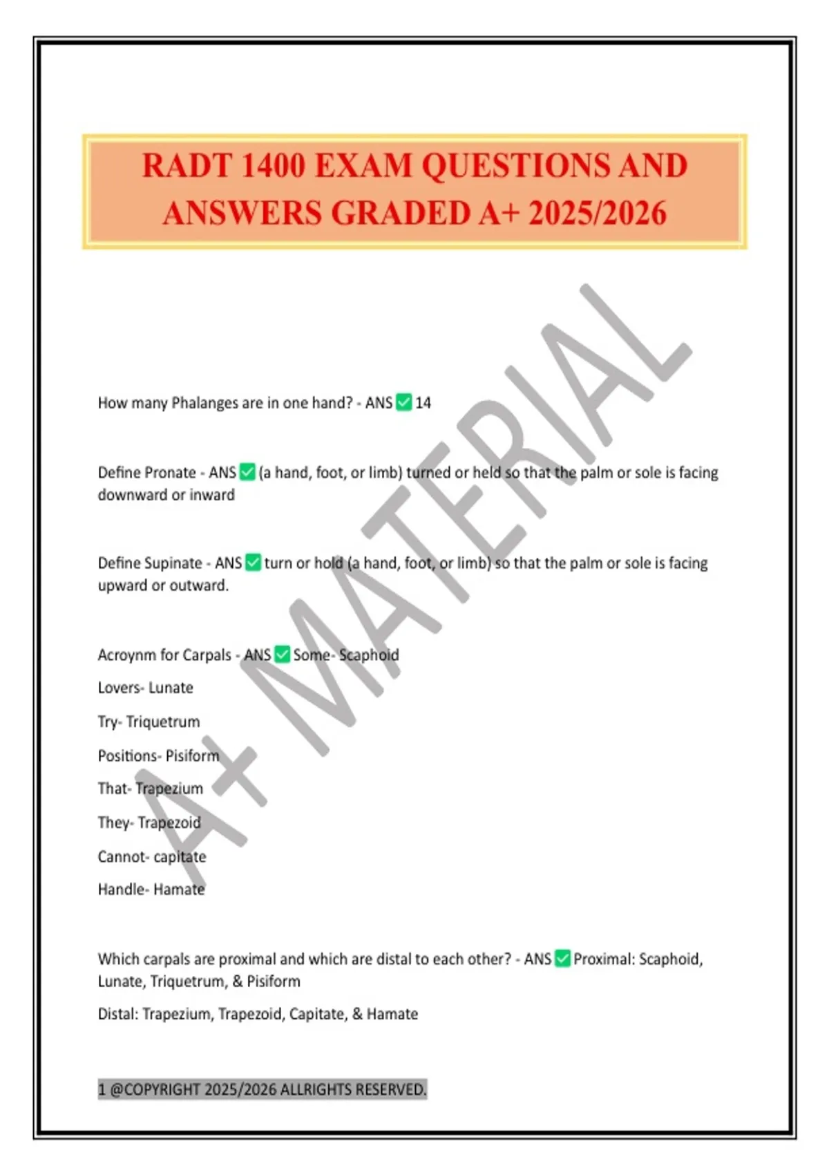 RADT 1400 EXAM QUESTIONS AND ANSWERS GRADED A+ 2025/2026