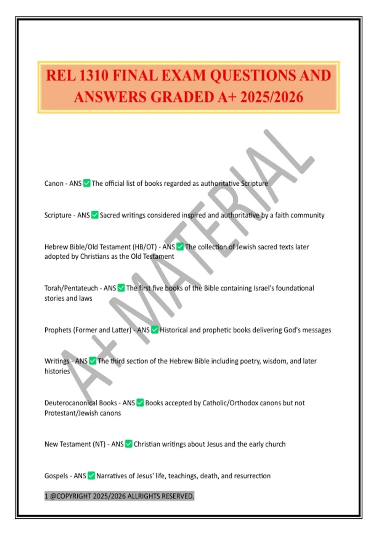 REL 1310 FINAL EXAM QUESTIONS AND