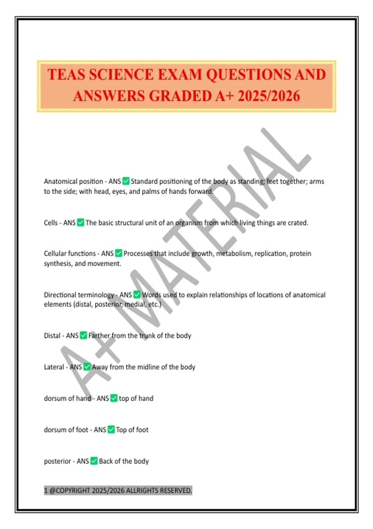 TEAS SCIENCE EXAM QUESTIONS AND