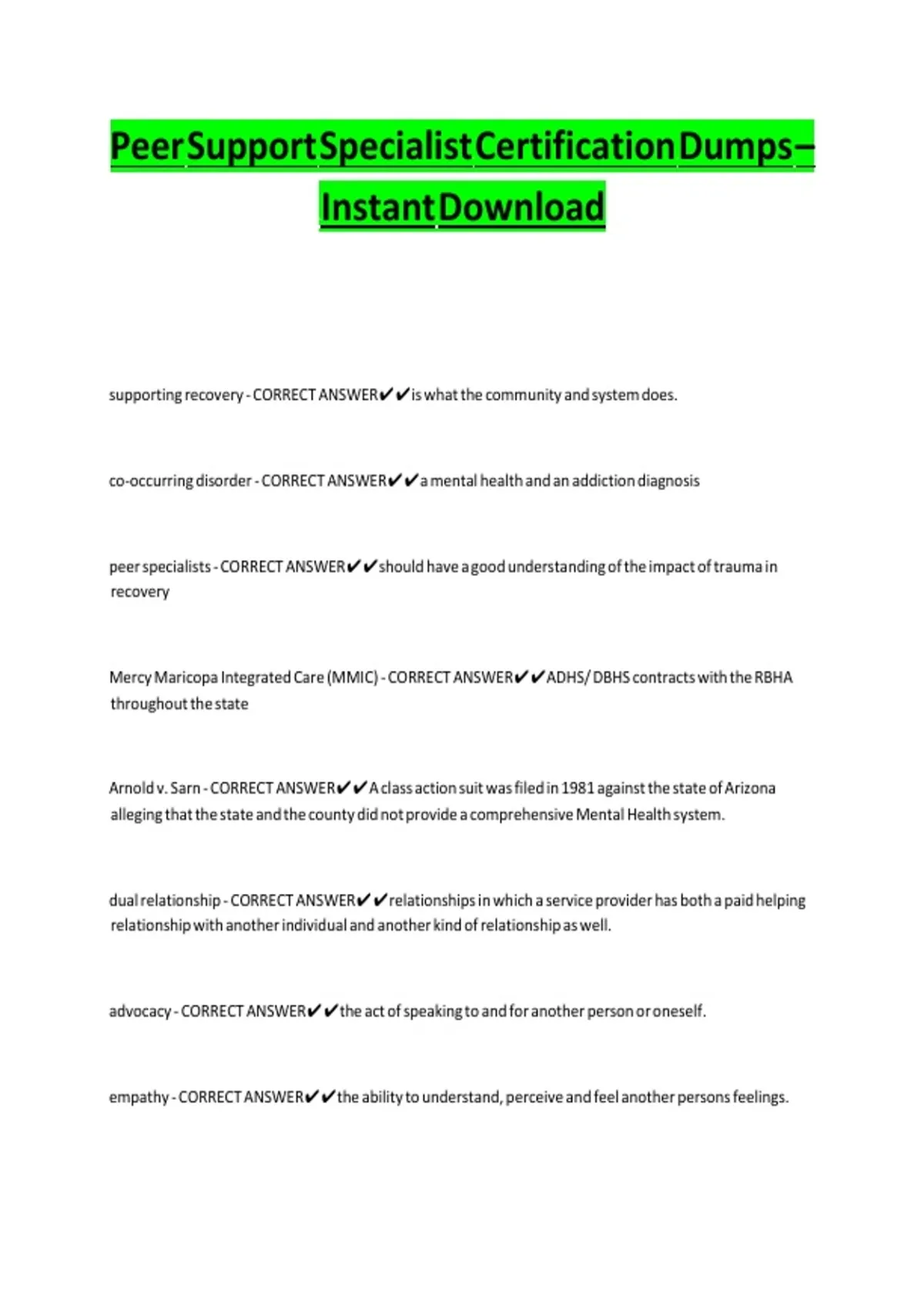 Peer Support Specialist Certification Dumps – Instant Download.