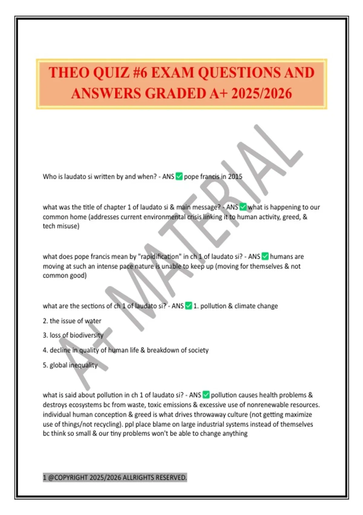 THEO QUIZ #6 EXAM QUESTIONS AND
