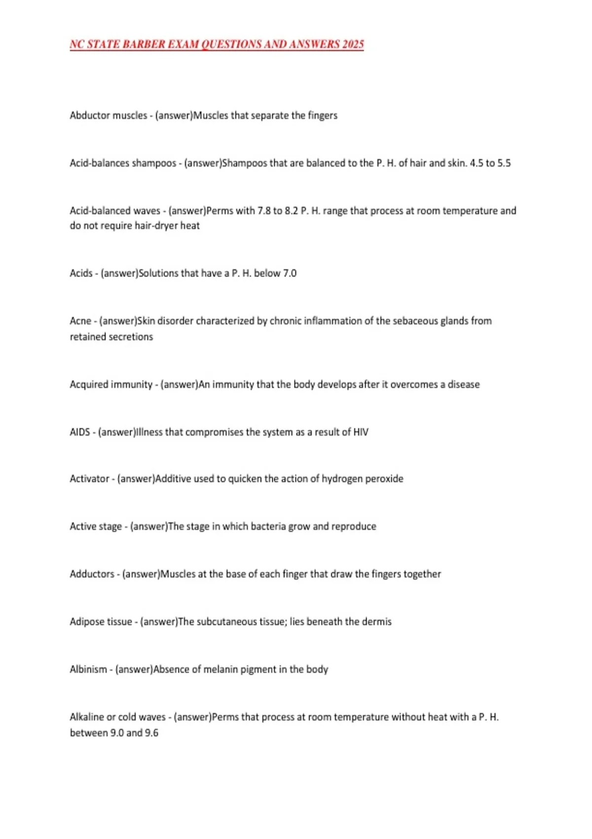 , NC STATE BARBER EXAM QUESTIONS AND ANSWERS 2025