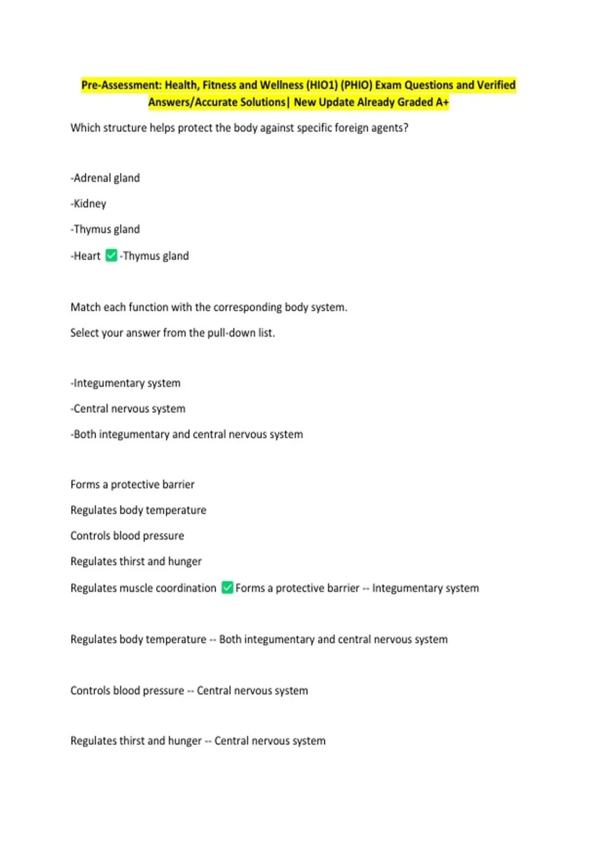 Pre-Assessment: Health, Fitness and Wellness (HIO1) (PHIO) Exam Questions and Verified Answers/Accurate Solutions|
