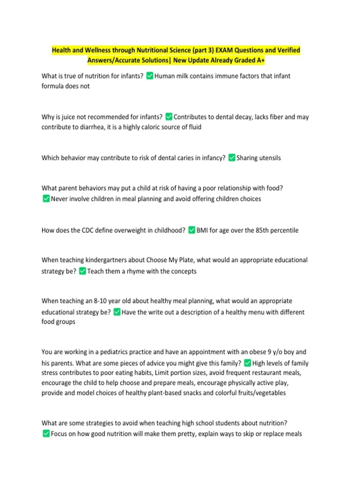 Health and Wellness through Nutritional Science (part 3) EXAM Questions and Verified
