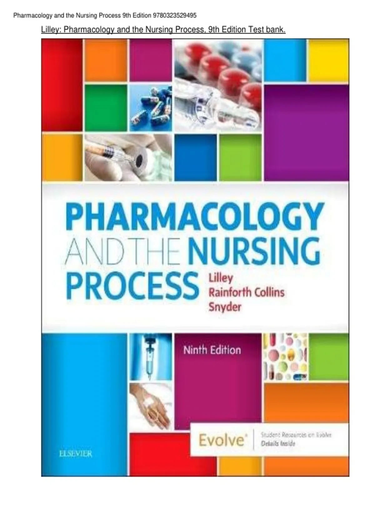 Lilley: Pharmacology and the Nursing Process, 9th Edition Test bank.