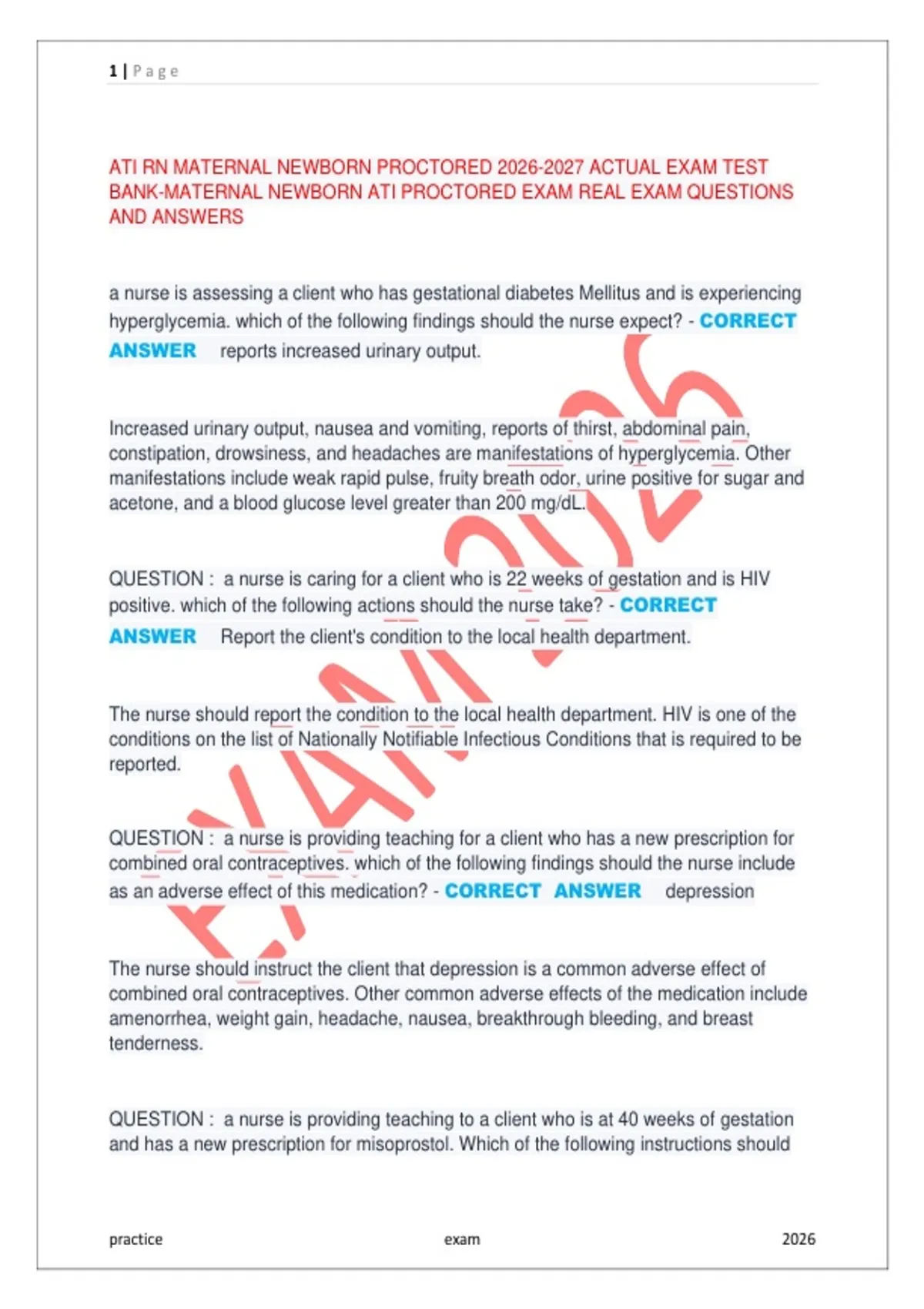BANK-MATERNAL NEWBORN ATI PROCTORED EXAM REAL EXAM QUESTIONS