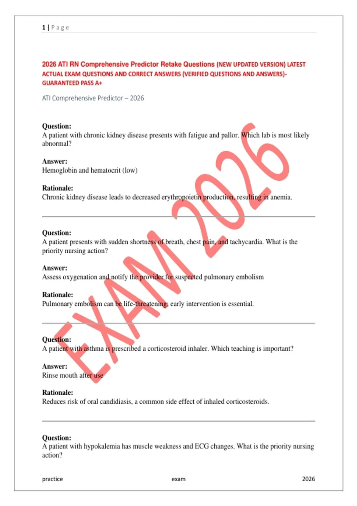 2026 ATI RN Comprehensive Predictor Retake Questions (NEW UPDATED VERSION) LATEST