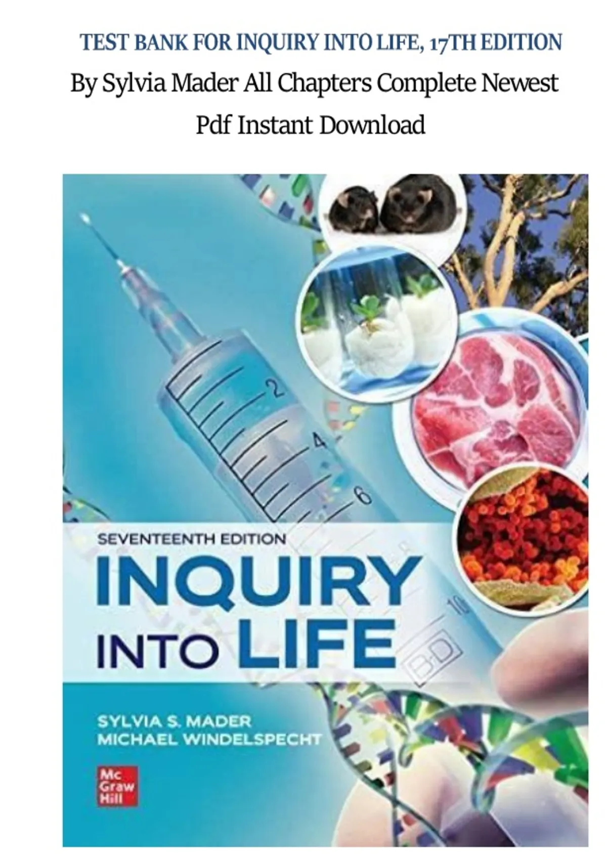 Test Bank - for Inquiry into Life 17th Edition by Sylvia S. Mader, Michael Windelspecht, All Chapters | Complete Guide A+