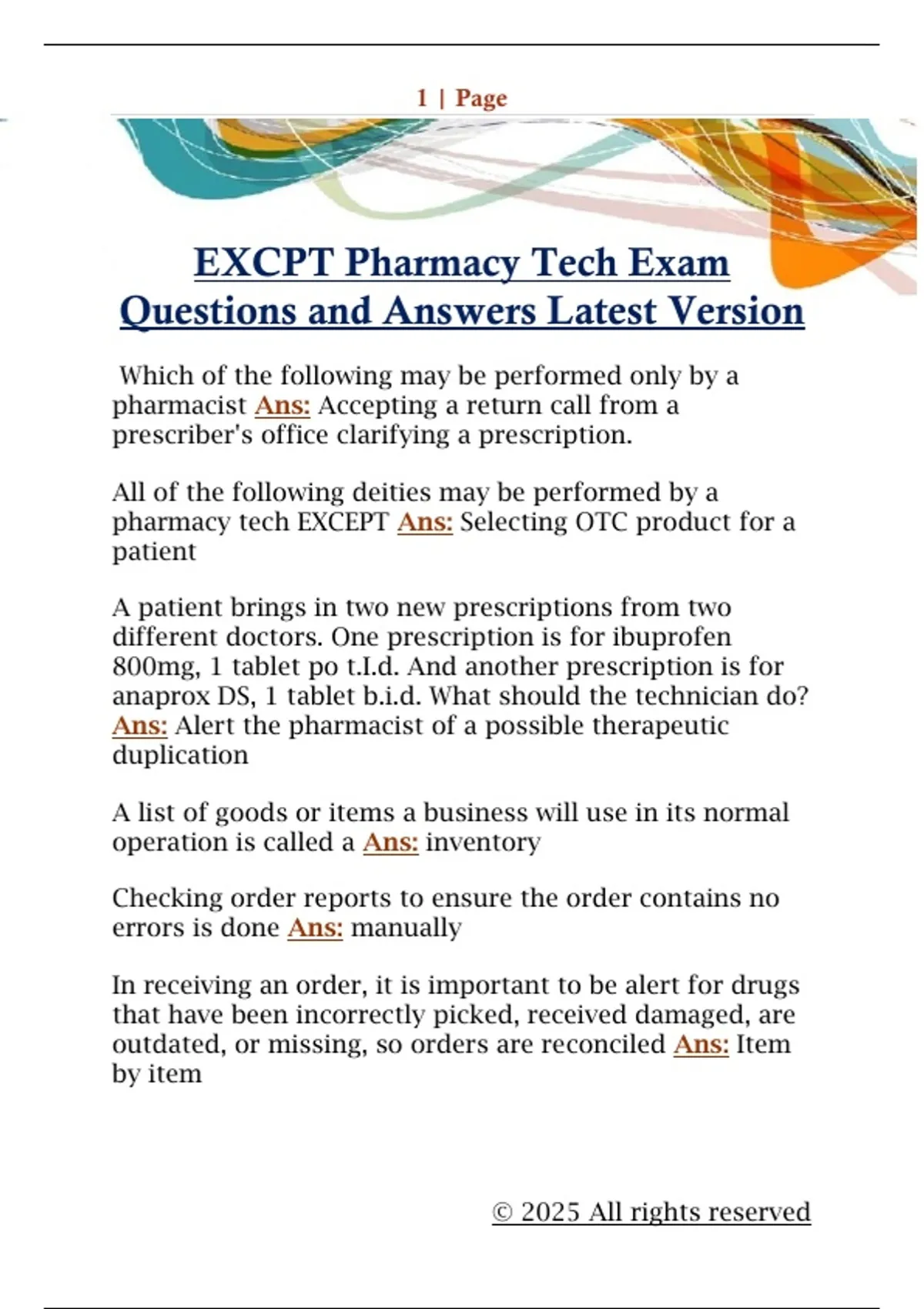 pharmacy tech EXCEPT Ans: Selecting OTC product for a