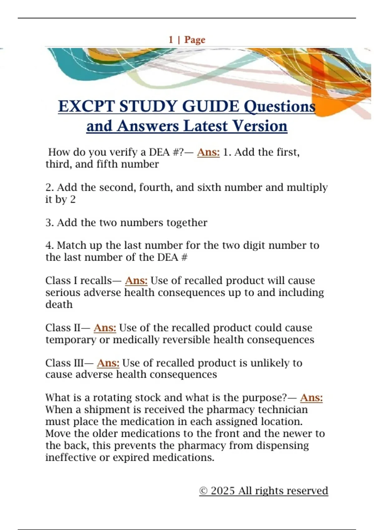 EXCPT STUDY GUIDE Questions