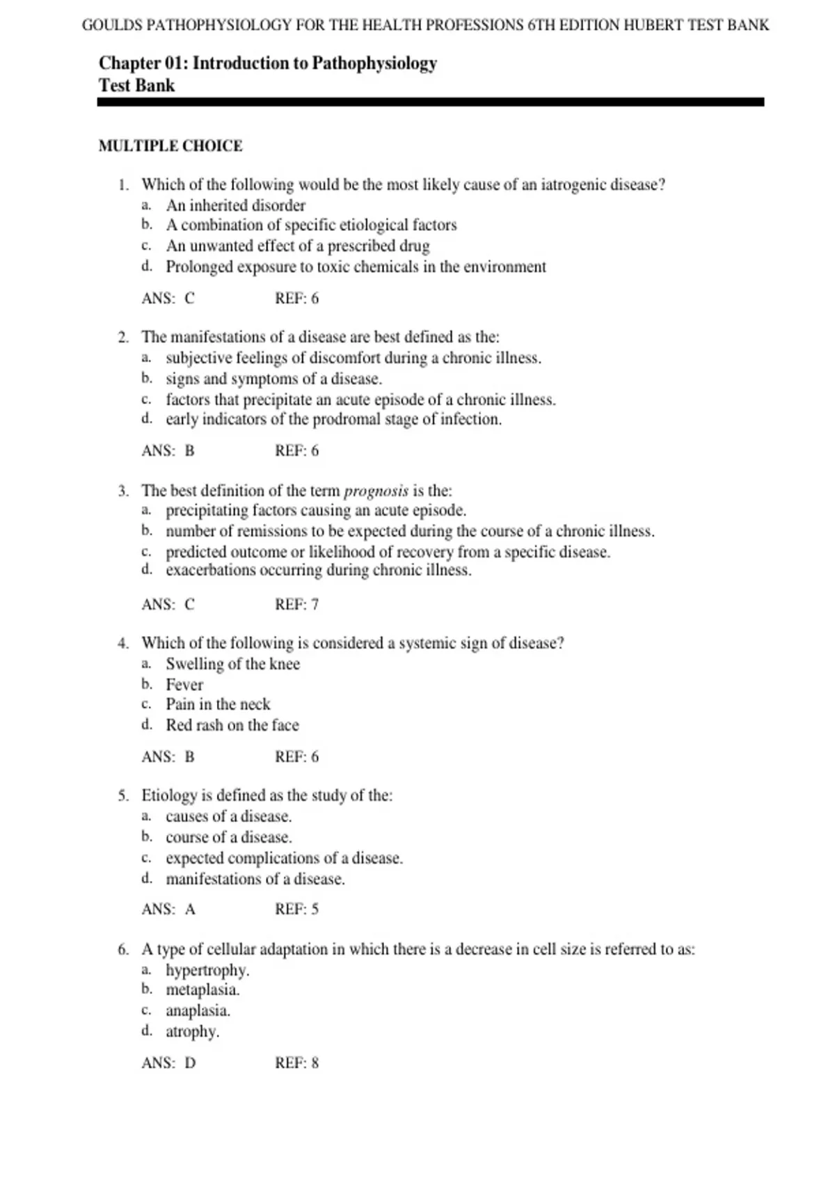 , GOULDS PATHOPHYSIOLOGY FOR THE HEALTH PROFESSIONS 6TH EDITION HUBERT TEST BANK