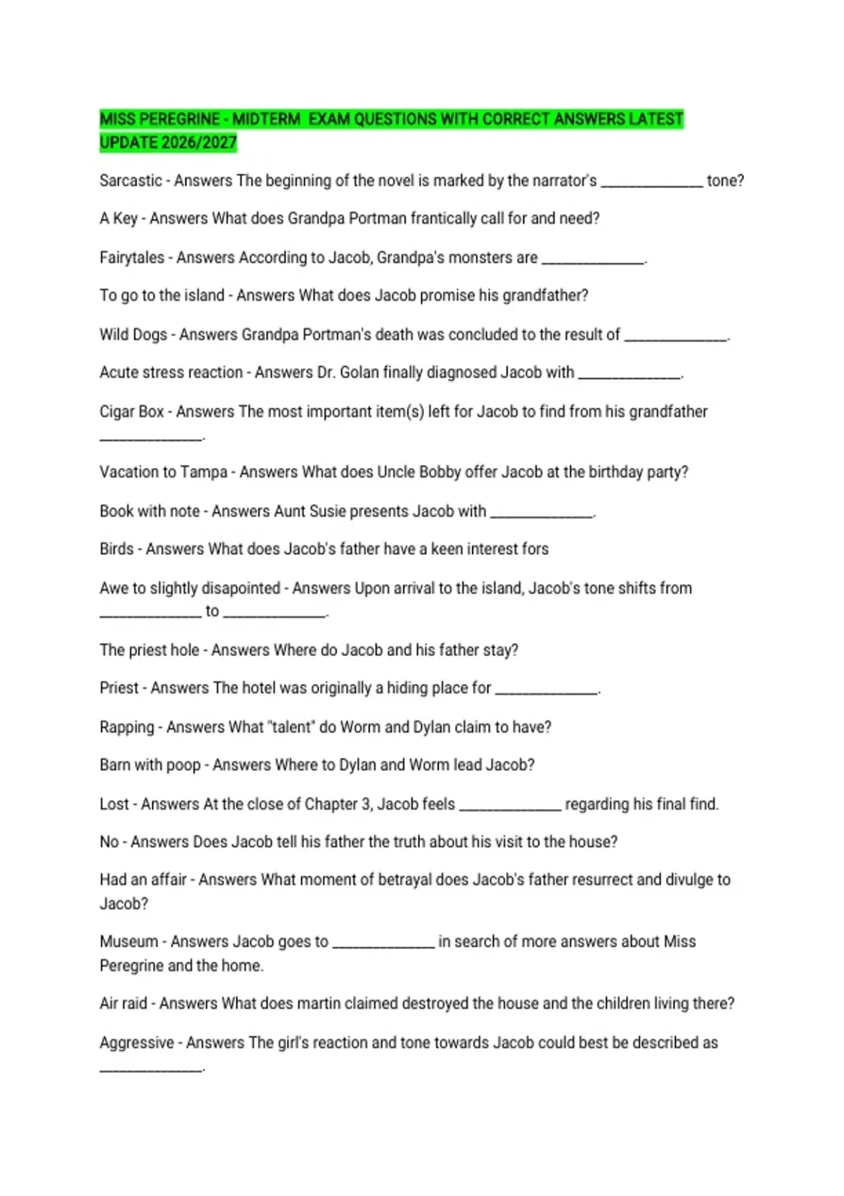 Museum - Answers Jacob goes to _______________ in search of more answers about Miss