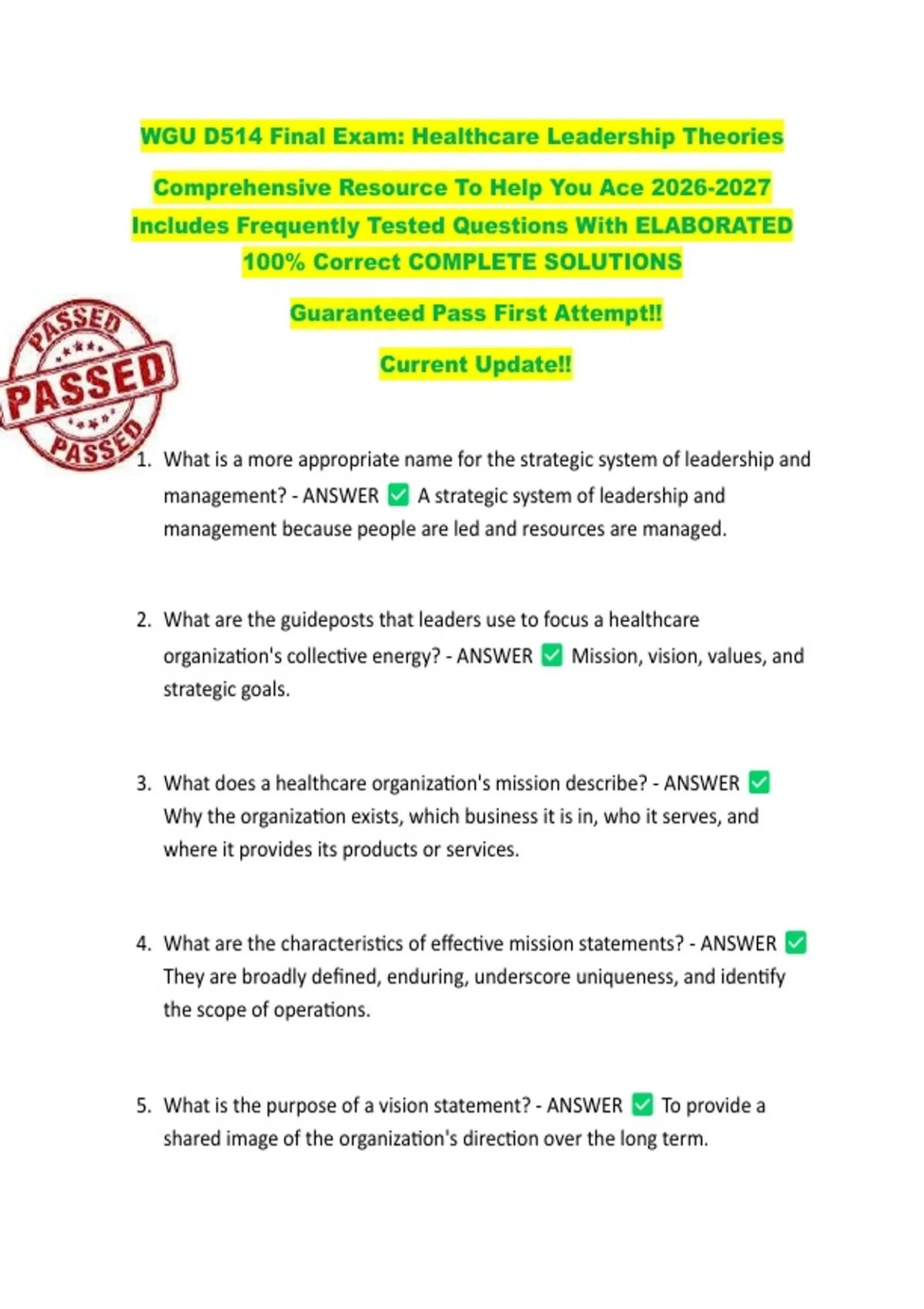 5. What is the purpose of a vision statement? - ANSWER To provide a