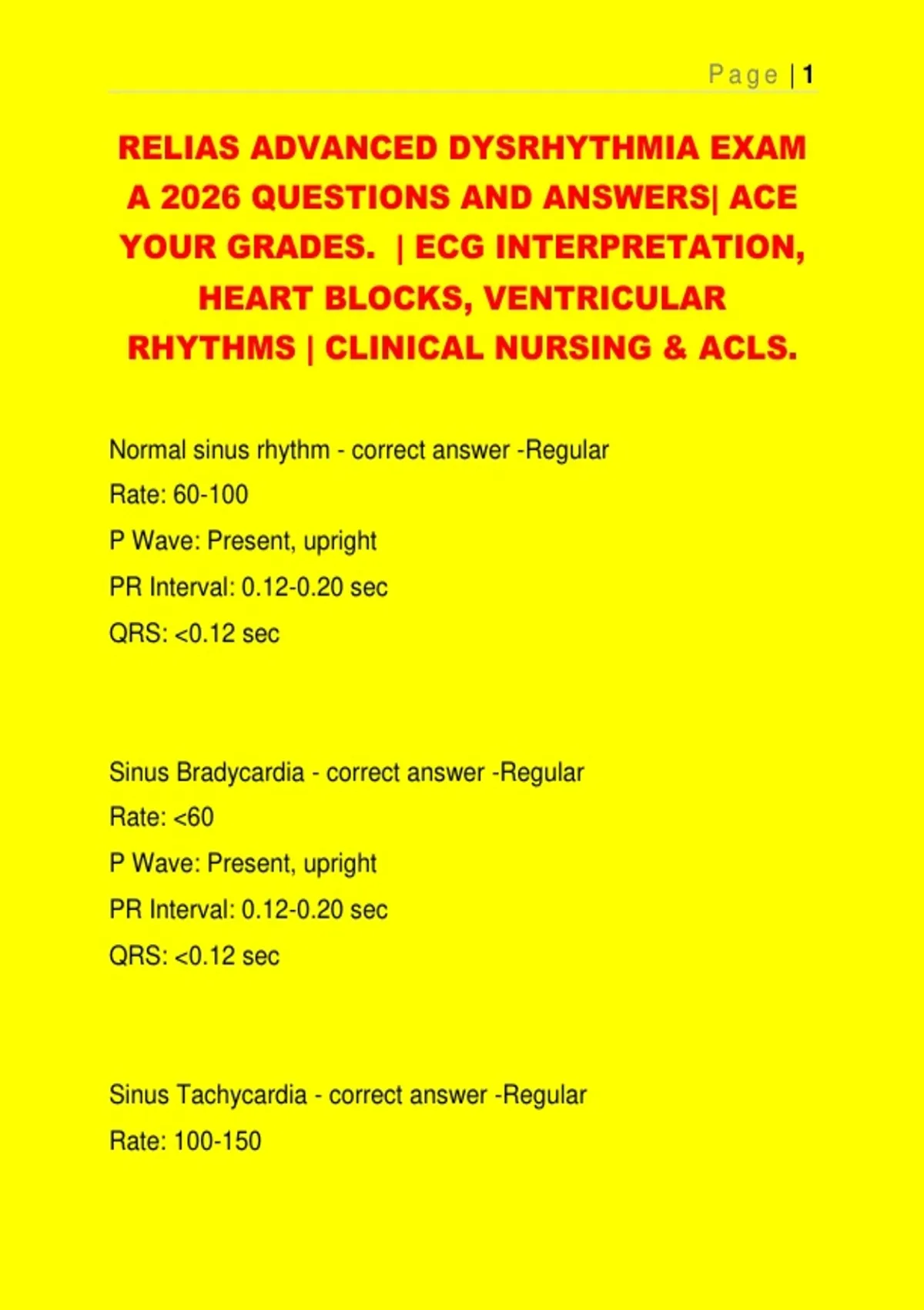 RELIAS ADVANCED DYSRHYTHMIA EXAM