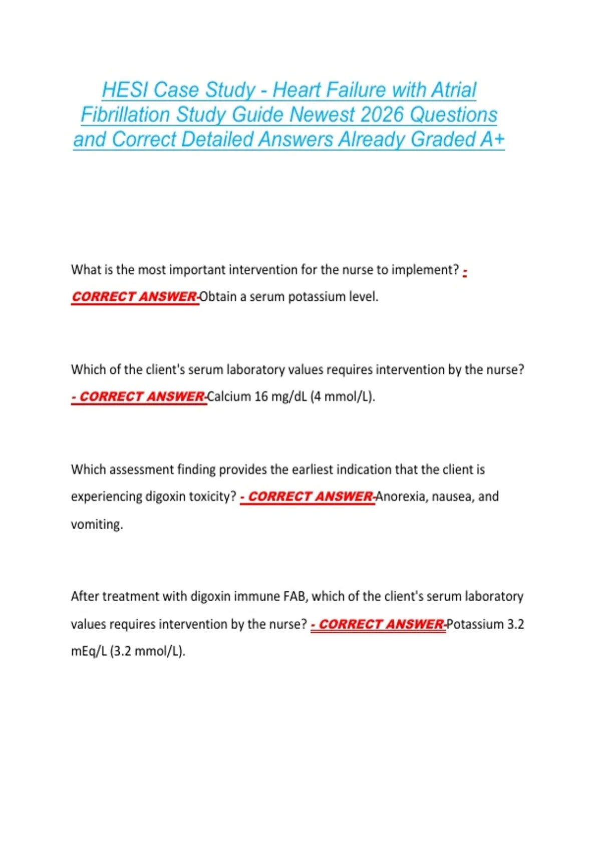 they are receiving treatment for his digoxin toxicity? - CORRECT ANSWER-An