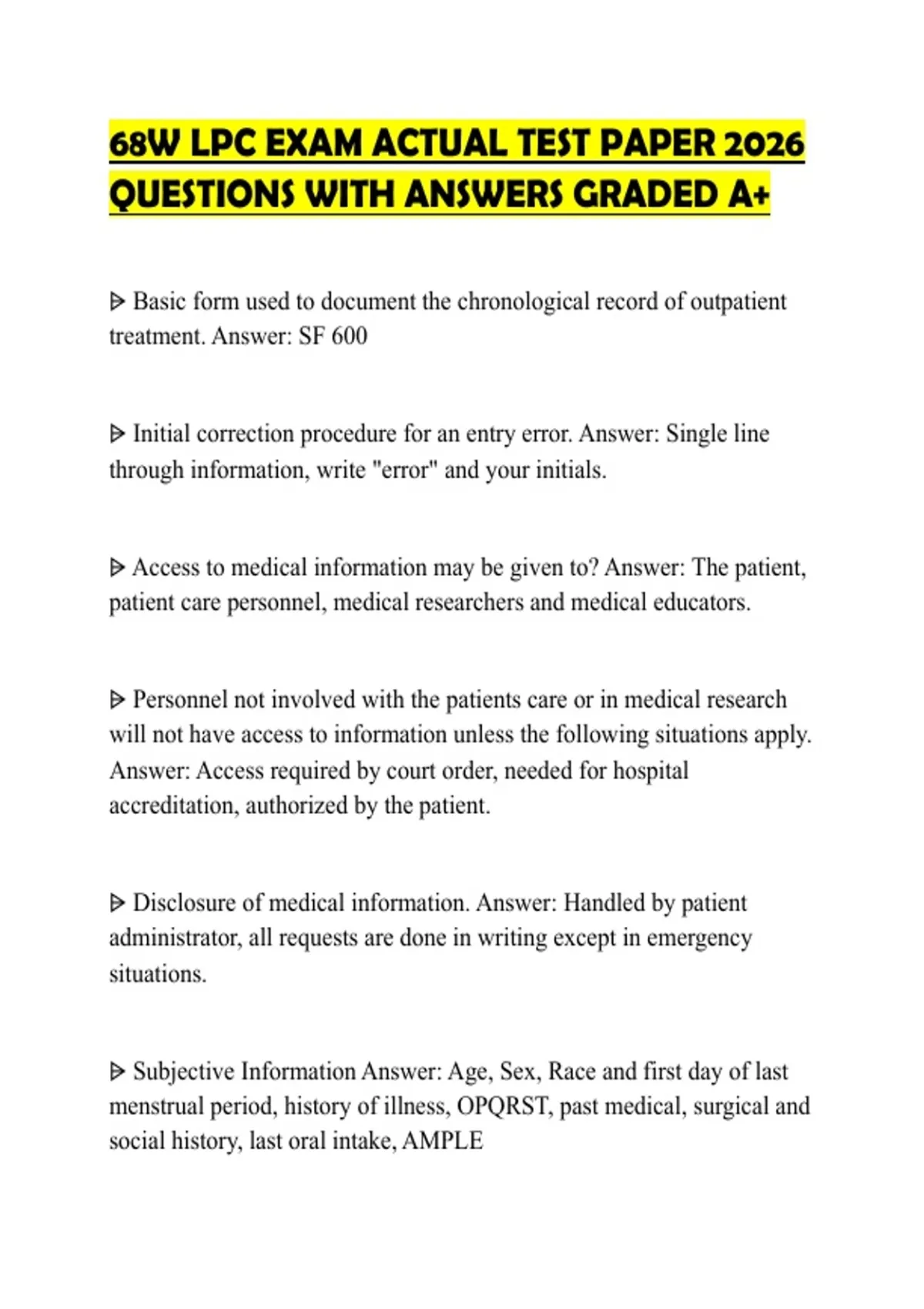 68W LPC EXAM ACTUAL TEST PAPER 2026 QUESTIONS WITH ANSWERS GRADED A+