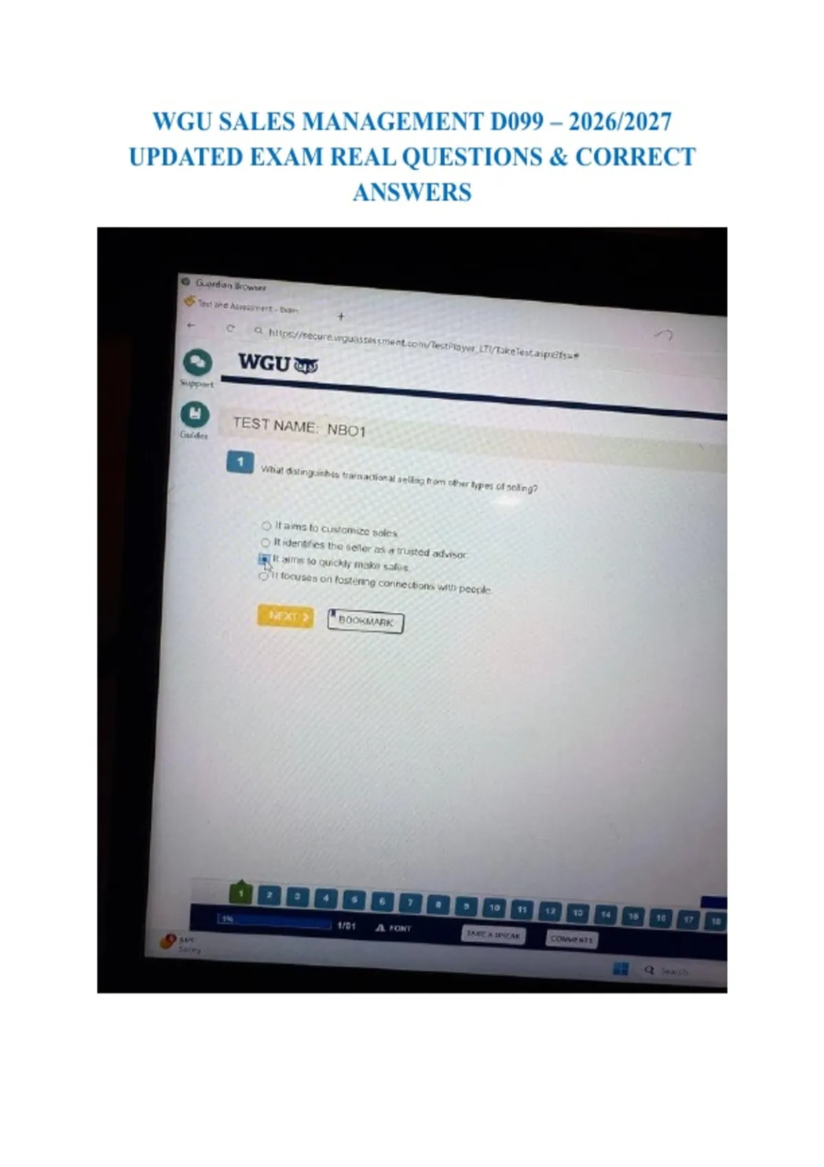 WGU SALES MANAGEMENT D099 – 2026/2027 UPDATED EXAM REAL QUESTIONS & CORRECT ANSWERS