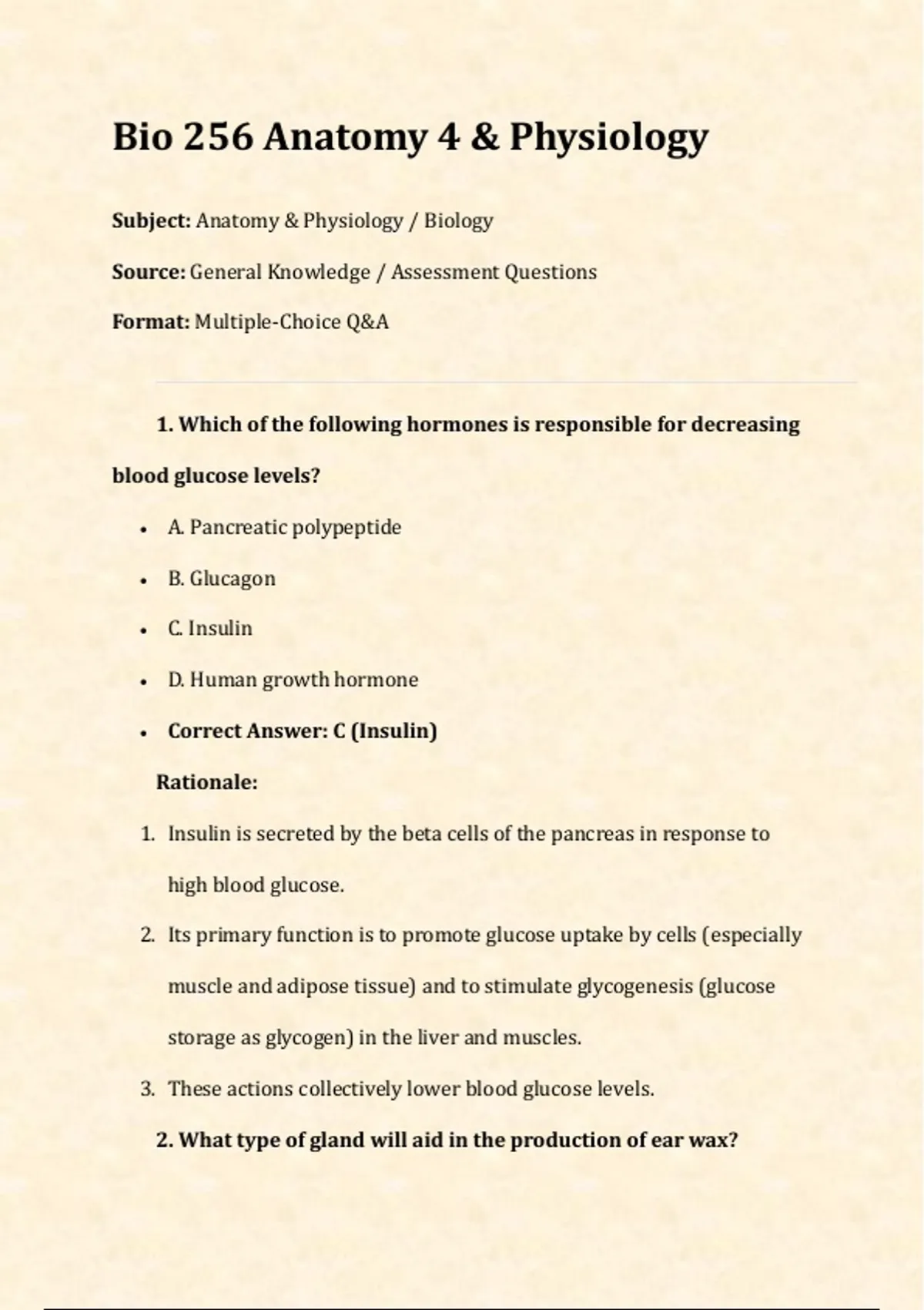 1. Insulin is secreted by the beta cells of the pancreas in response to