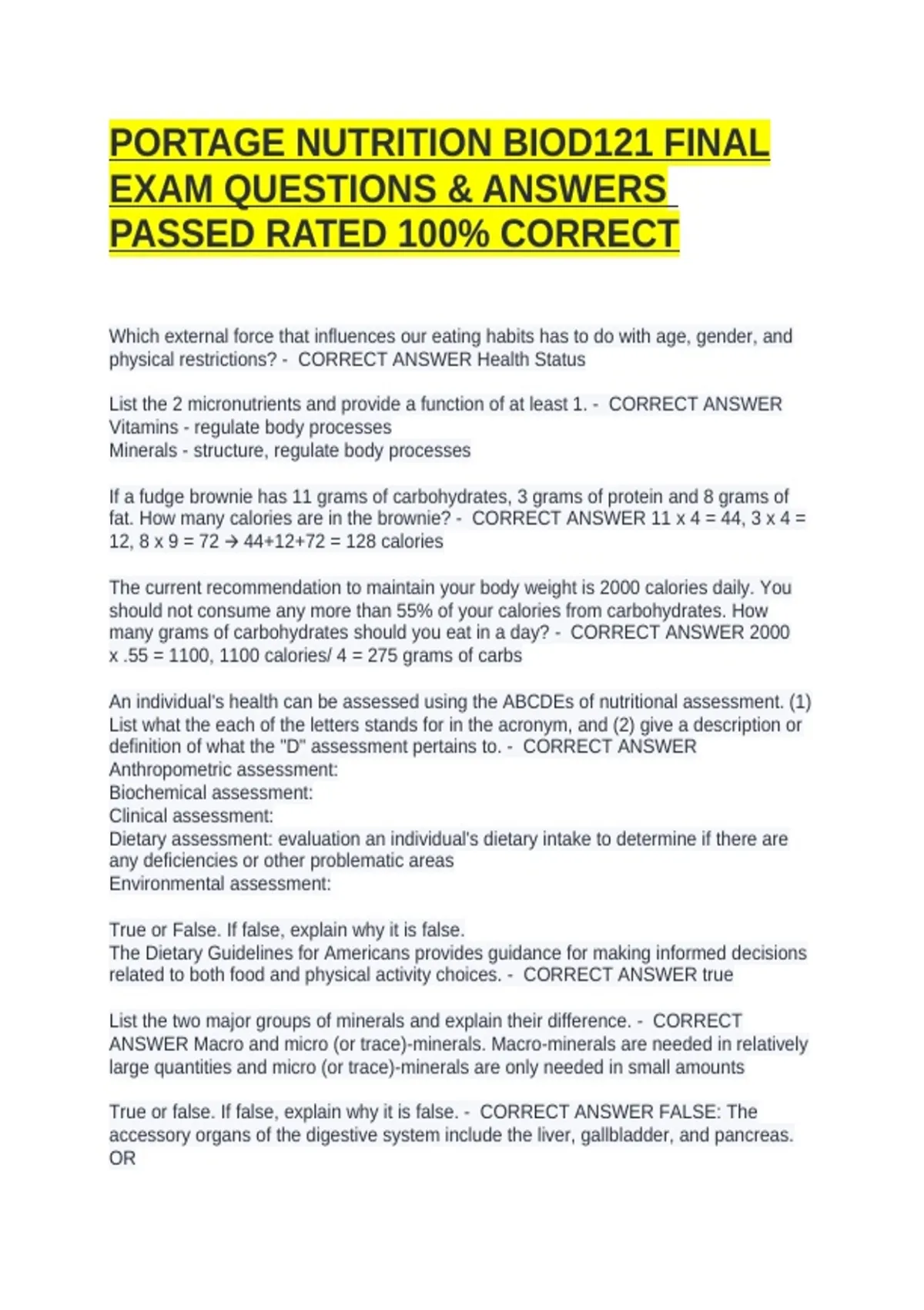 PORTAGE NUTRITION BIOD121 FINAL