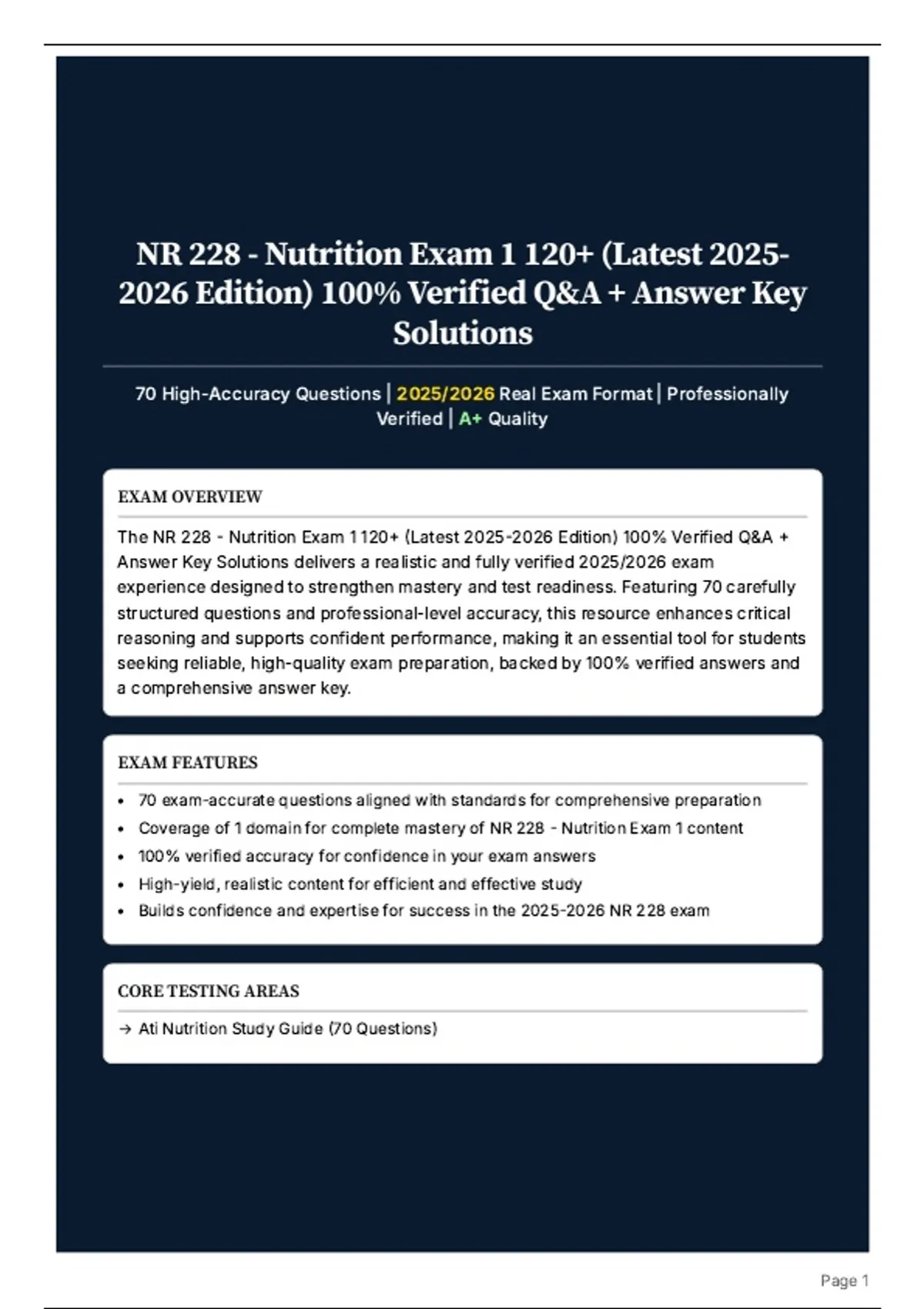 The NR 228 - Nutrition Exam 1 120+ (Latest 2025-2026 Edition) 100% Verified Q&A +