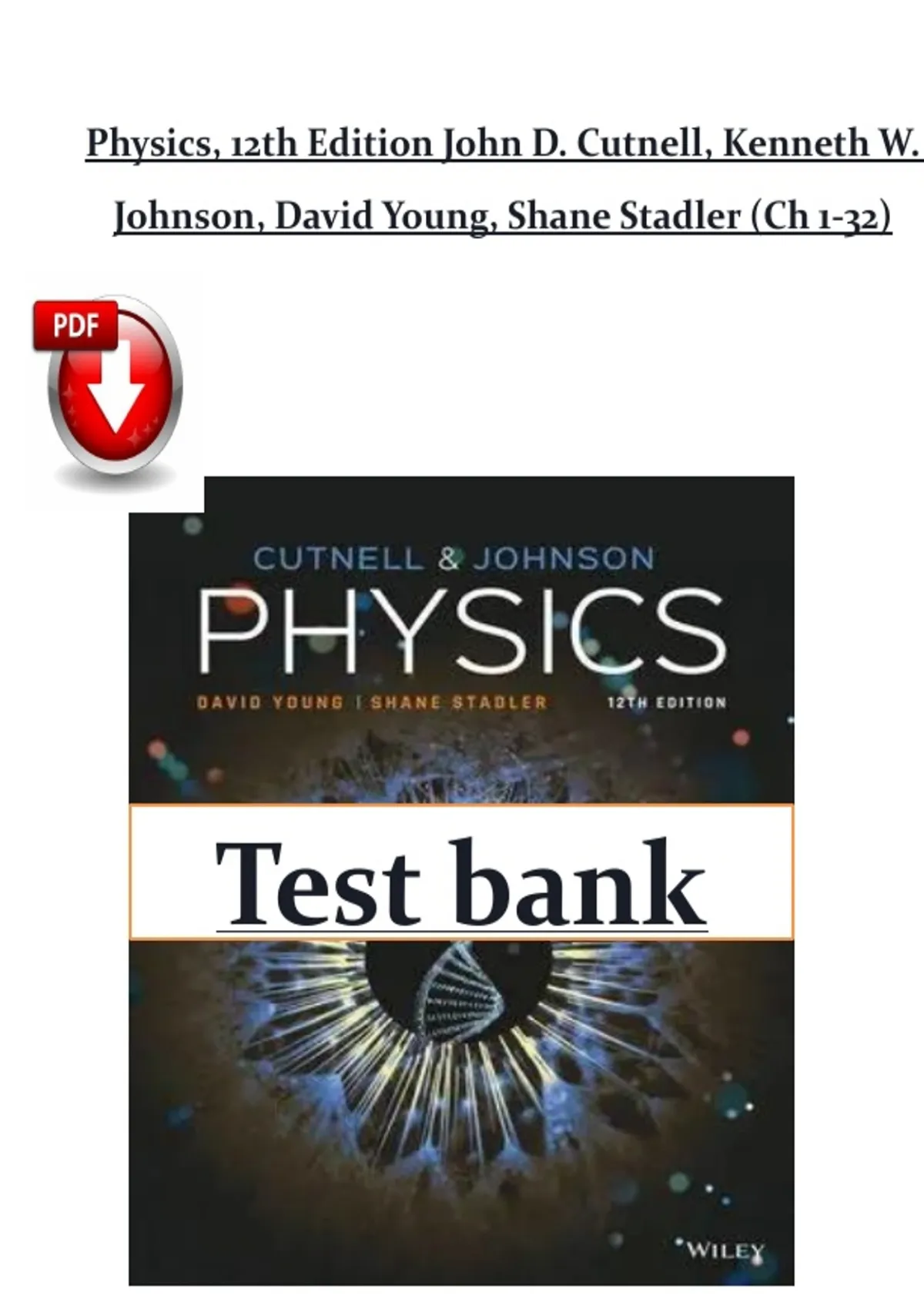 Test Bank – Physics, 12th Edition | Cutnell, Johnson, Young & Stadler | Chapters 1–32 | Latest Edition