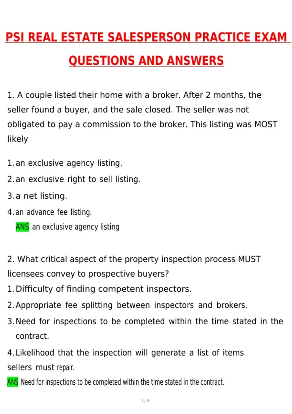 1. A couple listed their home with a broker. After 2 months, the