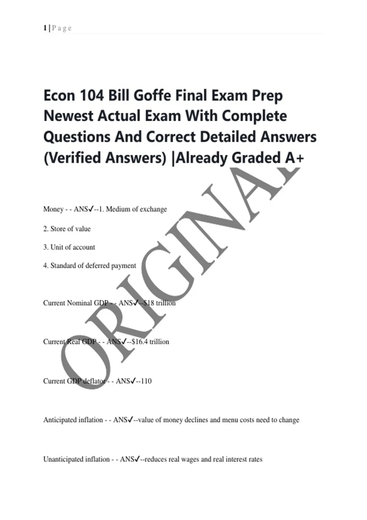 Econ 104 Bill Goffe Final Exam Prep Newest Actual Exam With Complete Questions And Correct Detailed Answers (Verified Answers) |Already Graded A+