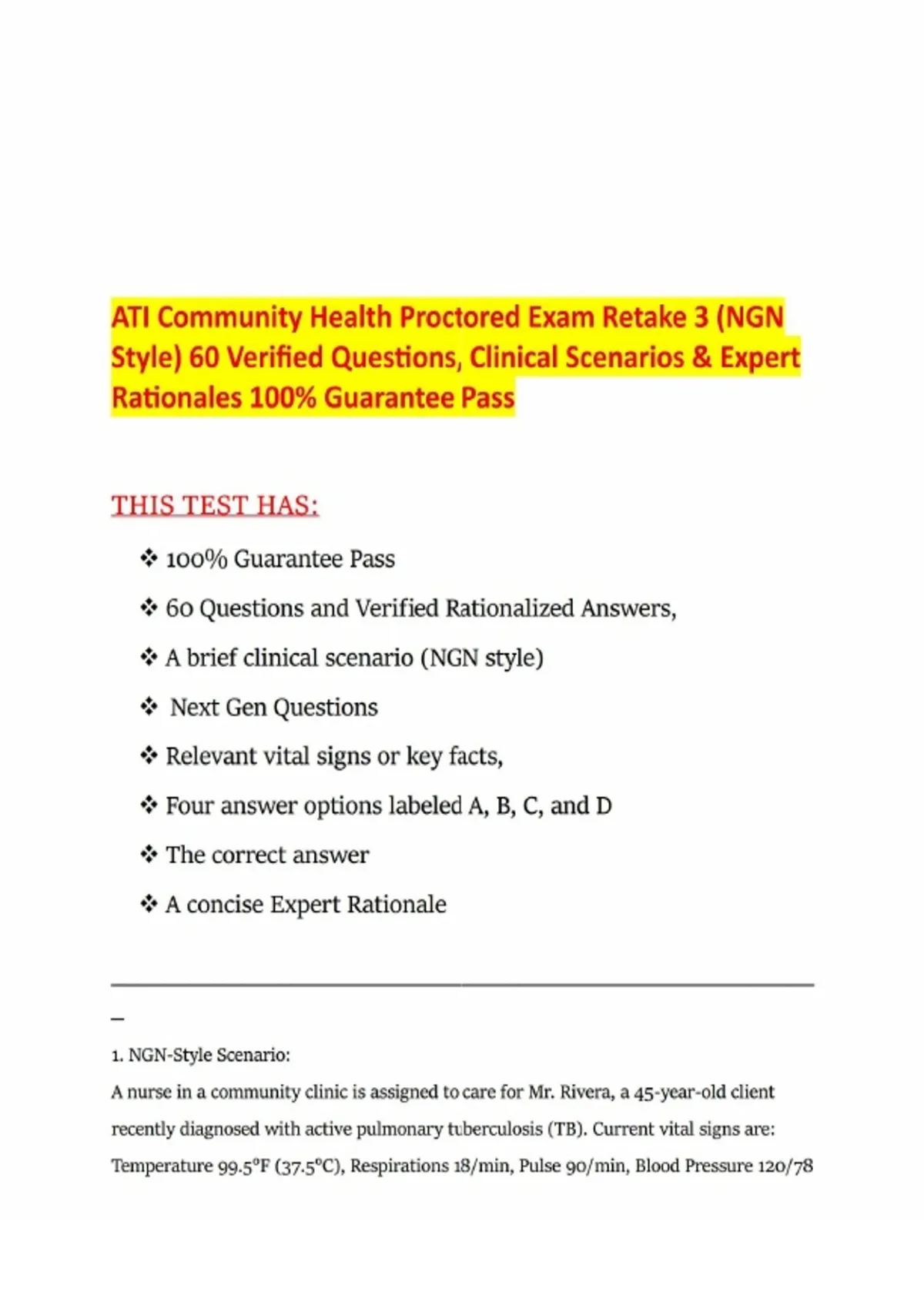 ATI Community Health Proctored Exam Retake 3 (NGN Style) 60 Verified Questions, Clinical Scenarios & Expert Rationales 100- Guarantee P ATI Community Health Proctored Exam Retake 3 (NGN Style) 60 Verified Questions, Clinical Scenarios & Expert Rationales 100- Guarantee P ATI Community Health Proctored Exam Retake 3 (NGN Style) 60 Verified Questions, Clinical Scenarios & Expert Rationales 100- Guarantee P